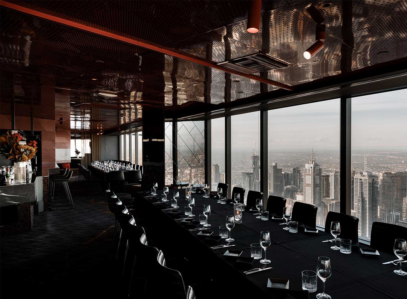 The Northern Point Room supports an open plan layout accommodating up to 150 guests standing or 120 seated. The Southern Point Room is a more intimate design accommodating up to 80 guests standing or 50 seated. Eureka 89 does not charge a room hire fee, provided their set minimum spends are met on food and beverage packages.