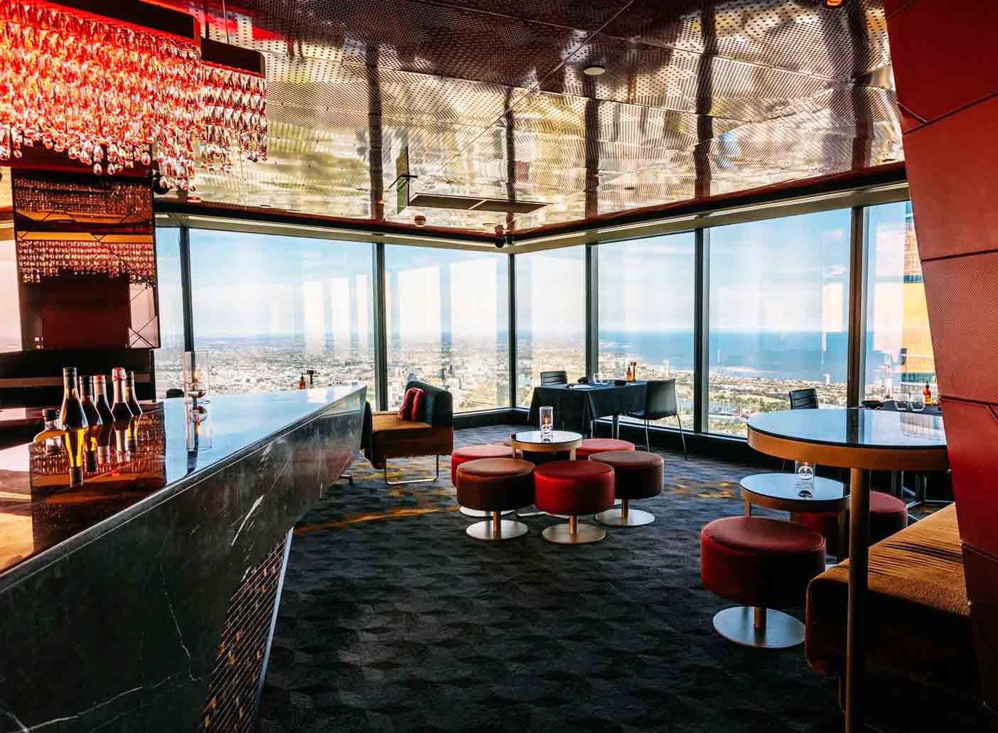 The space overlooks Port Phillip Bay, Albert Park Lake and the Botanical Gardens with floor to ceiling window. Minimum spends for the space start from $4,000 and are dependent on the time and day of the week as well as month of the year.