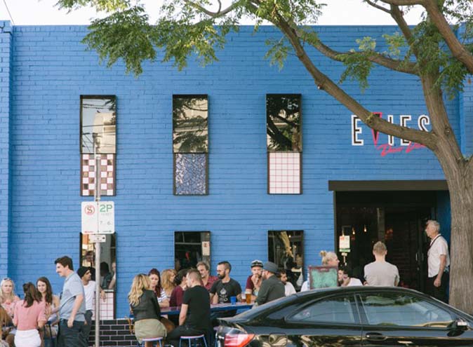 Evies Diner offers a 50% vegan American diner menu in a vibrant 1980s influenced warehouse setting on Gertrude St in Fitzroy. The venue is retro in look but contemporary in style. The former ironworks has been given a new lease of life and seats 120 in a mix of booths and higher tables with stools. Make the most of your night there with a dance floor, free arcade games and a photobooth!