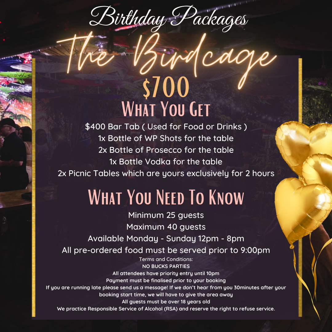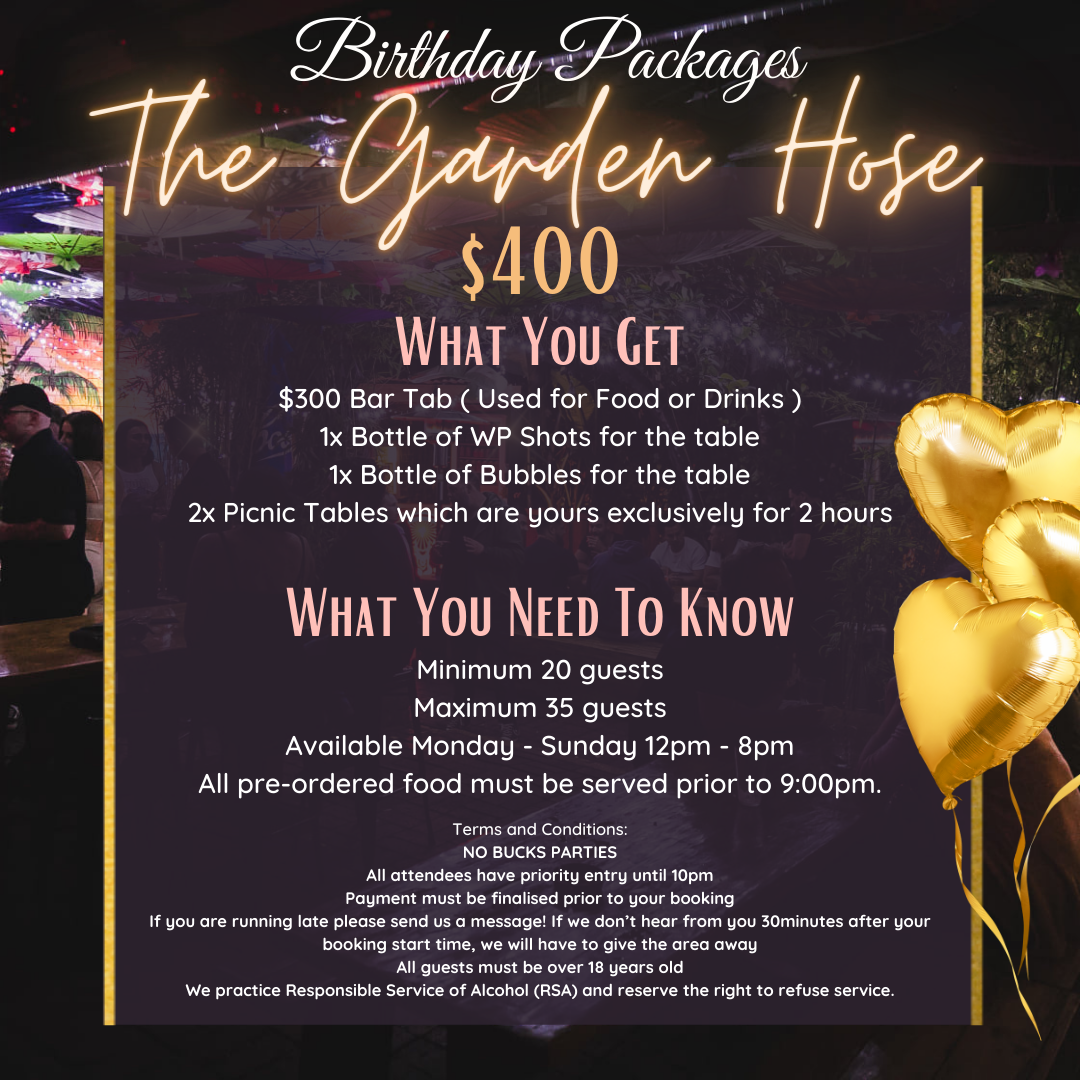 The Den has a minimum spend of $2000 for a 4-hour booking, which must be paid 7 days in advance, along with a 10% deposit to secure the date. This minimum spend is applied towards food and beverages.