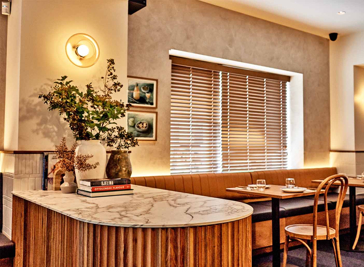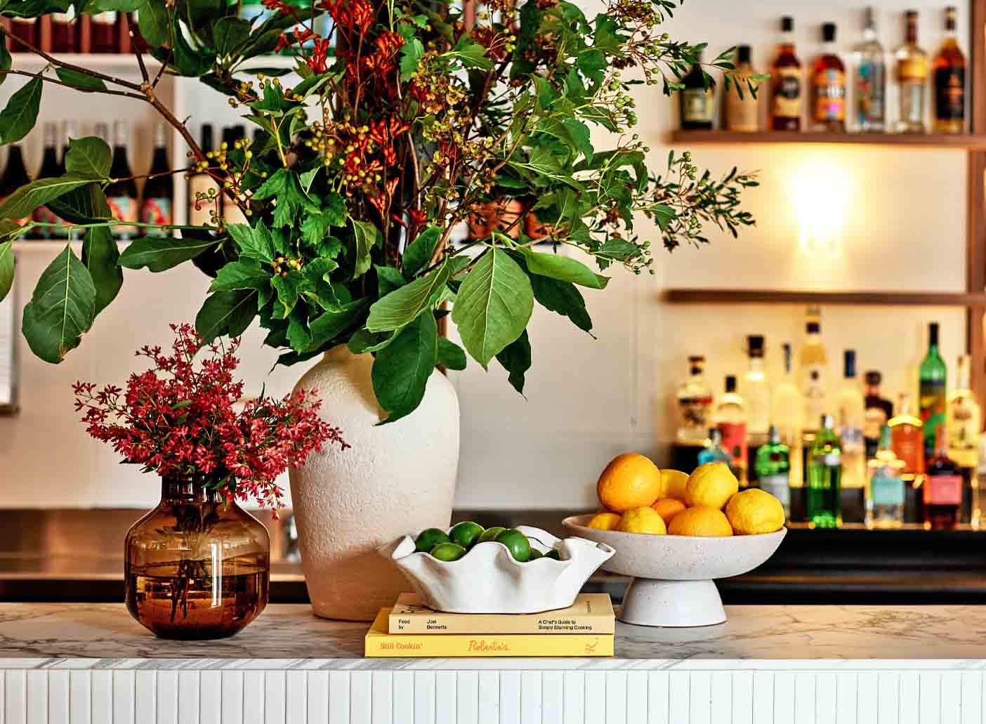 Open every day of the week, The Gertrude Hotel's dining room boasts beautiful interiors, soft leather banquettes, Bentwood chairs, a collection of contemporary art and treasures collected over many trips to Italy.