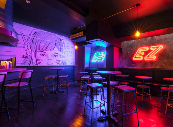 Boozy bubble cups are the star of the show at the bar. Flavours are inspired by games and pop culture and are a milky treat to drink while chatting with friends or watching e-sports on the TV. Other deliciously themed cocktails are available, as well as a variety of beers, wines and spirits.