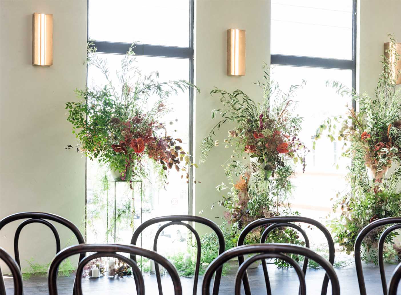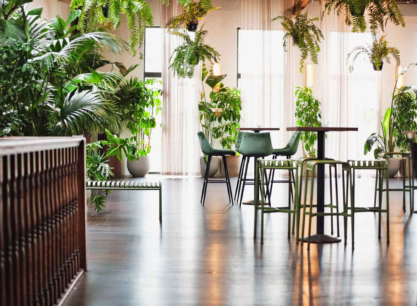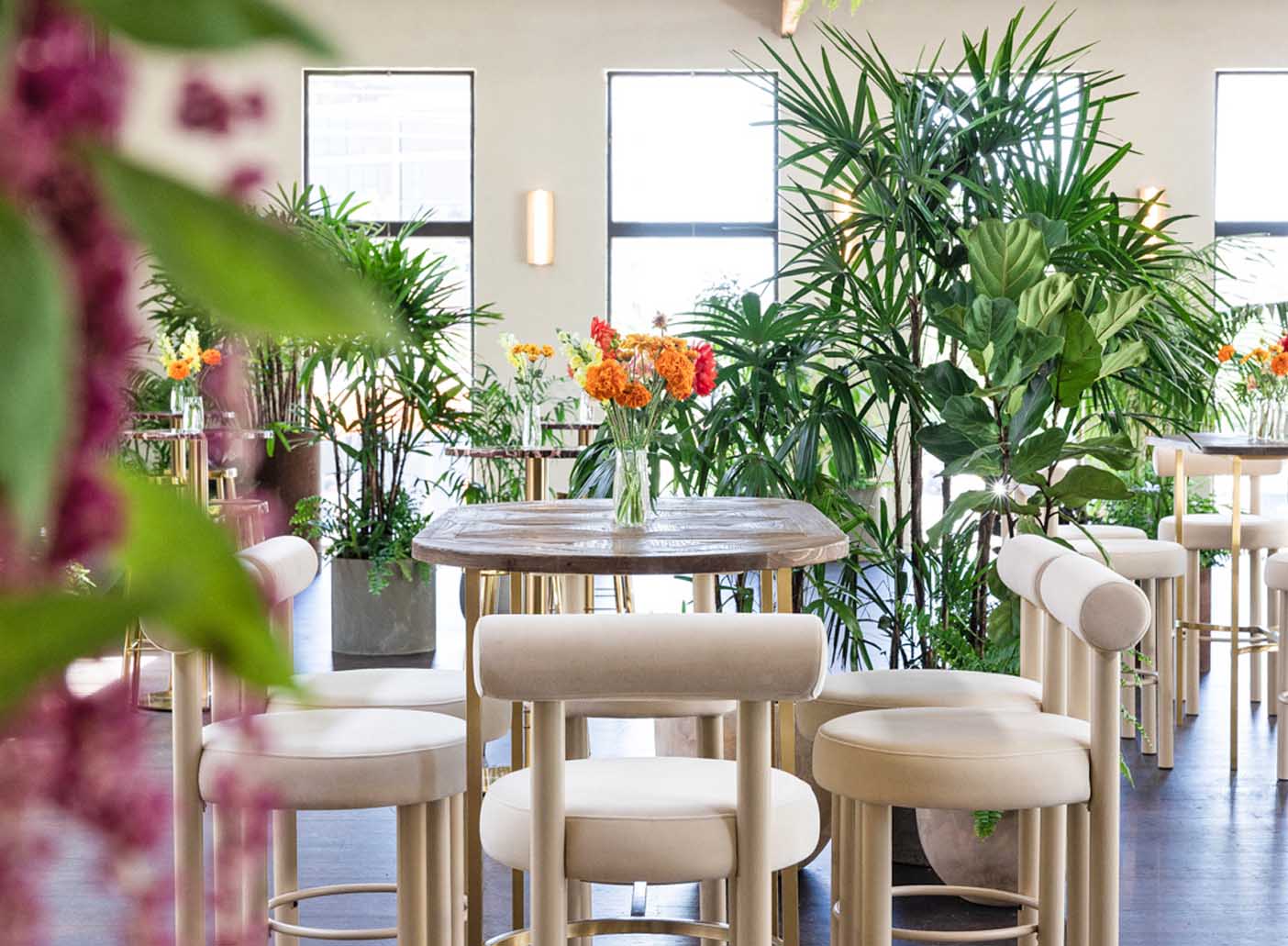 Huge windows, exposed beams, soaring ceilings, captivating light, and shadows reflecting the distinctive plant life of Glasshaus.