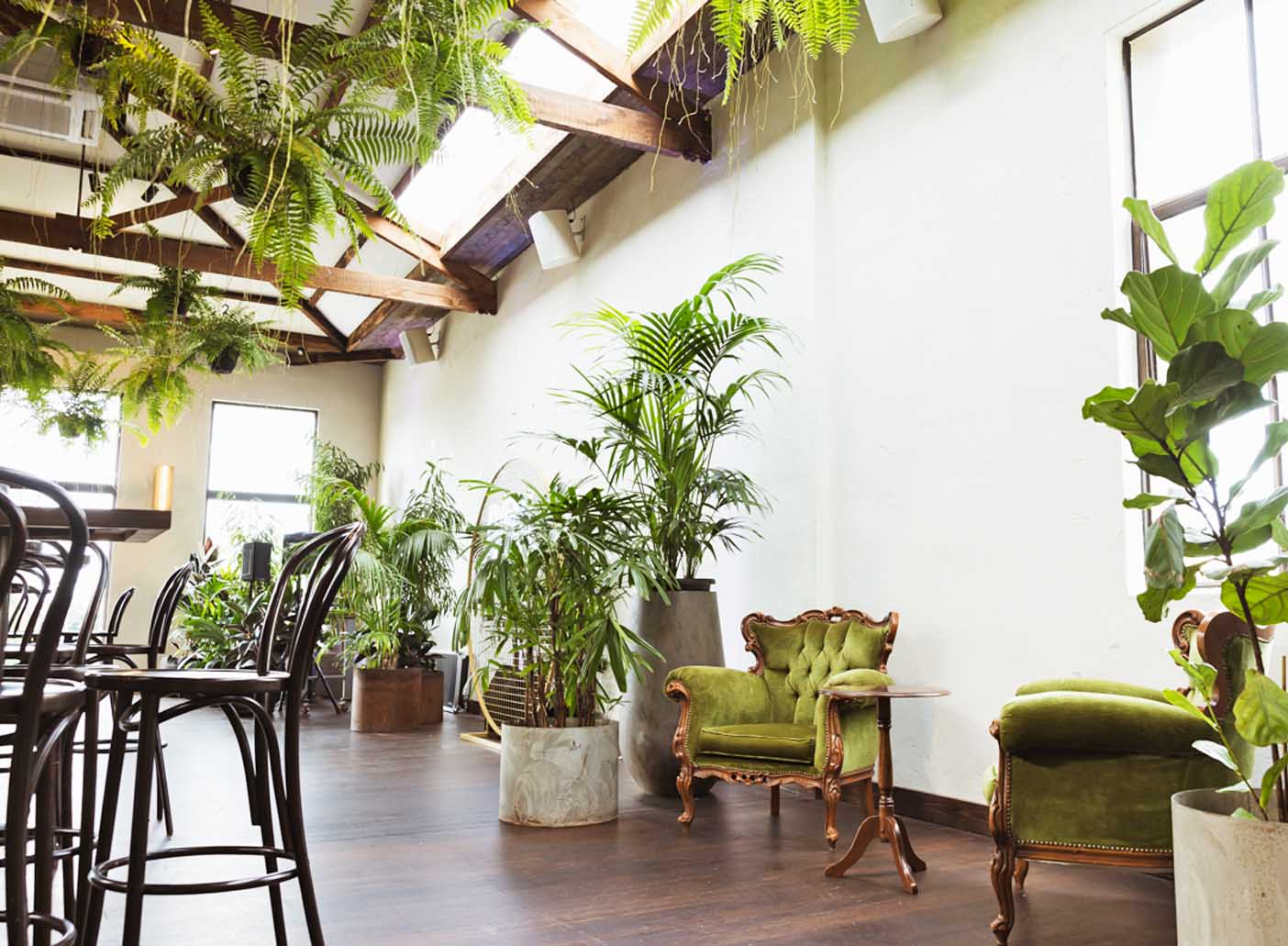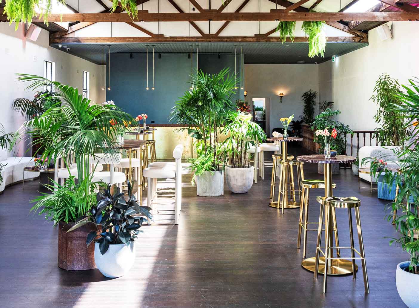 Soaring ceilings, exposed beams, brutalist windows, mesmerising light and shadows reflecting Glasshaus' signature plant life.