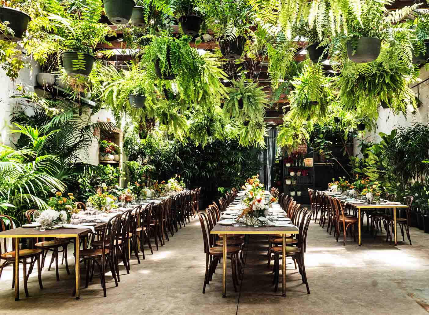 • Carefully curated large plant displays draping from the ceiling and resting against walls