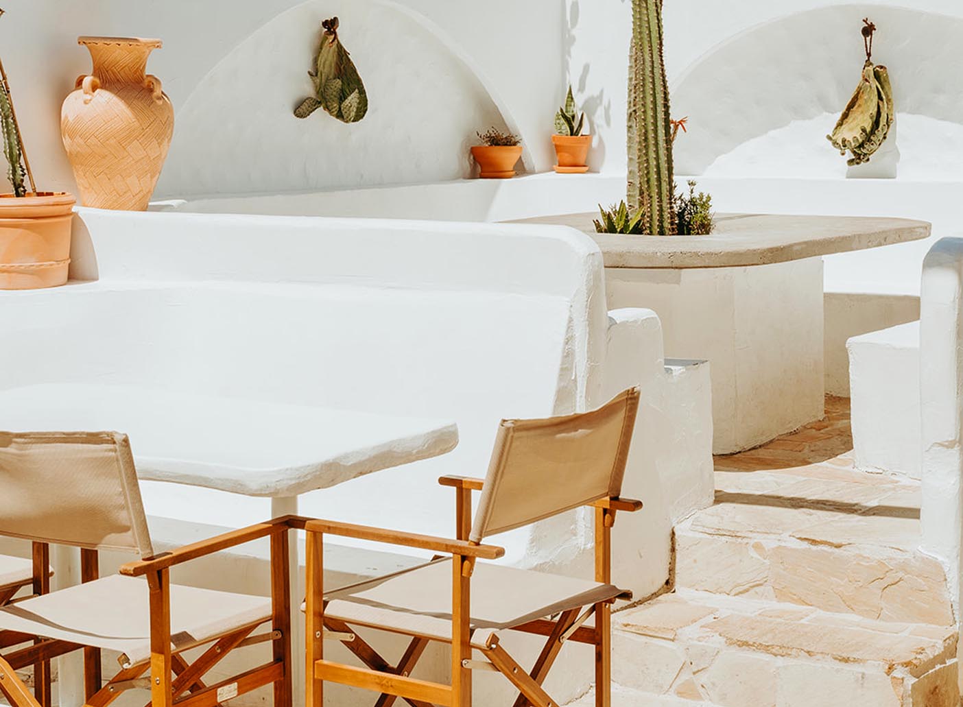 If you prefer an indoor setting, Golden Fleece Hotel's carefully curated indoor space is inspired by the caves of Santorini, with dark wooden floors and a warm and intimate atmosphere. It's the ideal space for corporate meetings, private dinners, and other events where a more intimate ambience is desired.