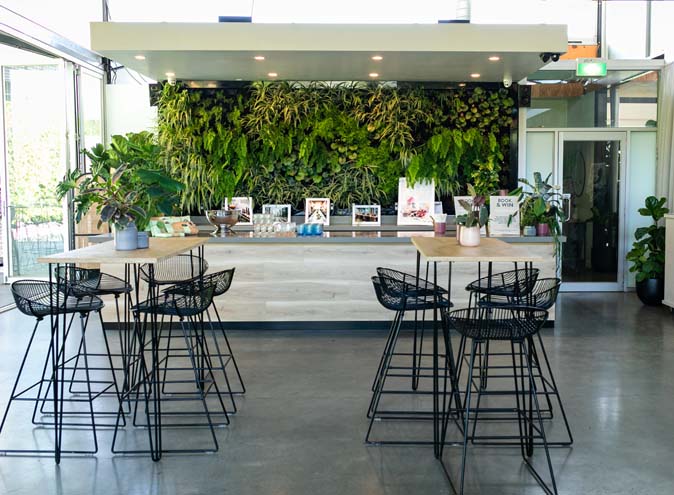Grow Event Space offer two open plans, inside and outside. The inside plan is designed with natural oak accents and polished concrete - a contemporary pallet for your event. There is a feature vertical garden behind the bar, along with designer pots and mature plants.