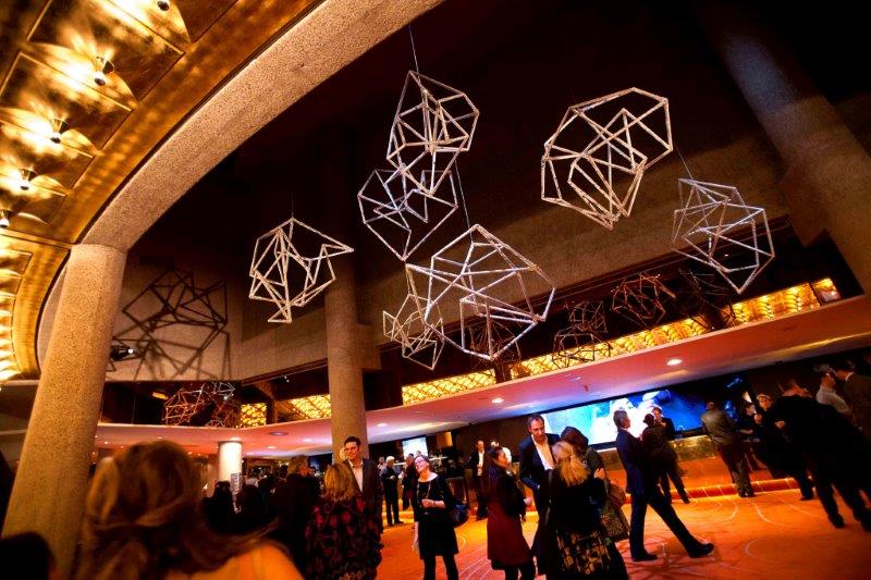 The smallest of Hamer Hall’s foyers, the Velik Foyer features the striking Robert Owen light feature Falling Light, which lights up the space with glittering shafts of light. This vibrant space is ideal for cocktail functions or banquet events.