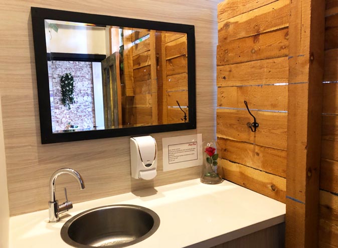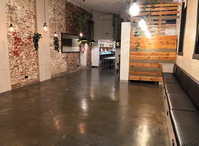 Available for hire is a large beautiful back room that can accommodate 50+ people with multiple table configurations (2, 4, 6, 8, 16). With modern and rustic décor that features a Vietnamese mural, and an audio system that has a dedicated zone, the room is perfect for corporate events such as team meetings, year end parties, birthday parties, wedding anniversaries and other family gatherings, or other ad-hoc events such as small music concerts. Suitable for both sit down and cocktail functions. Two toilets are located nearby and are to be shared with other patrons of the restaurant.