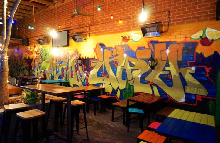 Step inside its turquoise door to a world of rainbow-coloured chairs, red brick walls covered with quirky artwork, and a temple of tequila – their bar. Work your way further down the back to their fireplace (for winter), or their picturesque beer garden (for summer), complete with fairy lights and graffiti-ed walls.