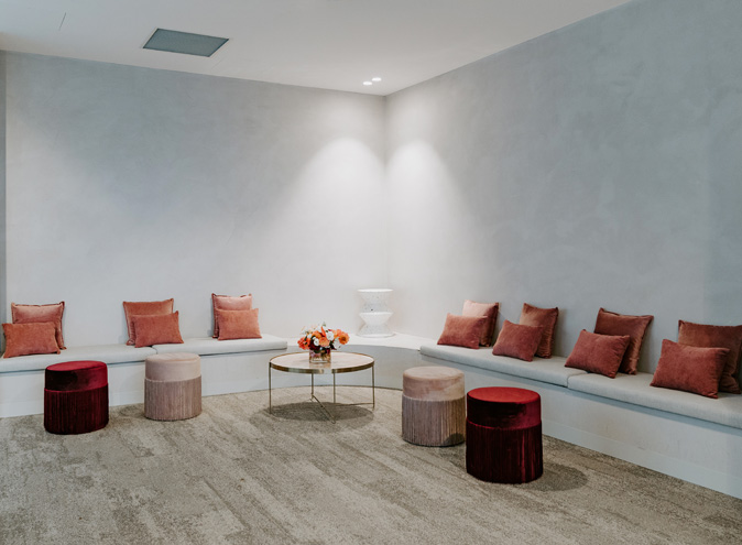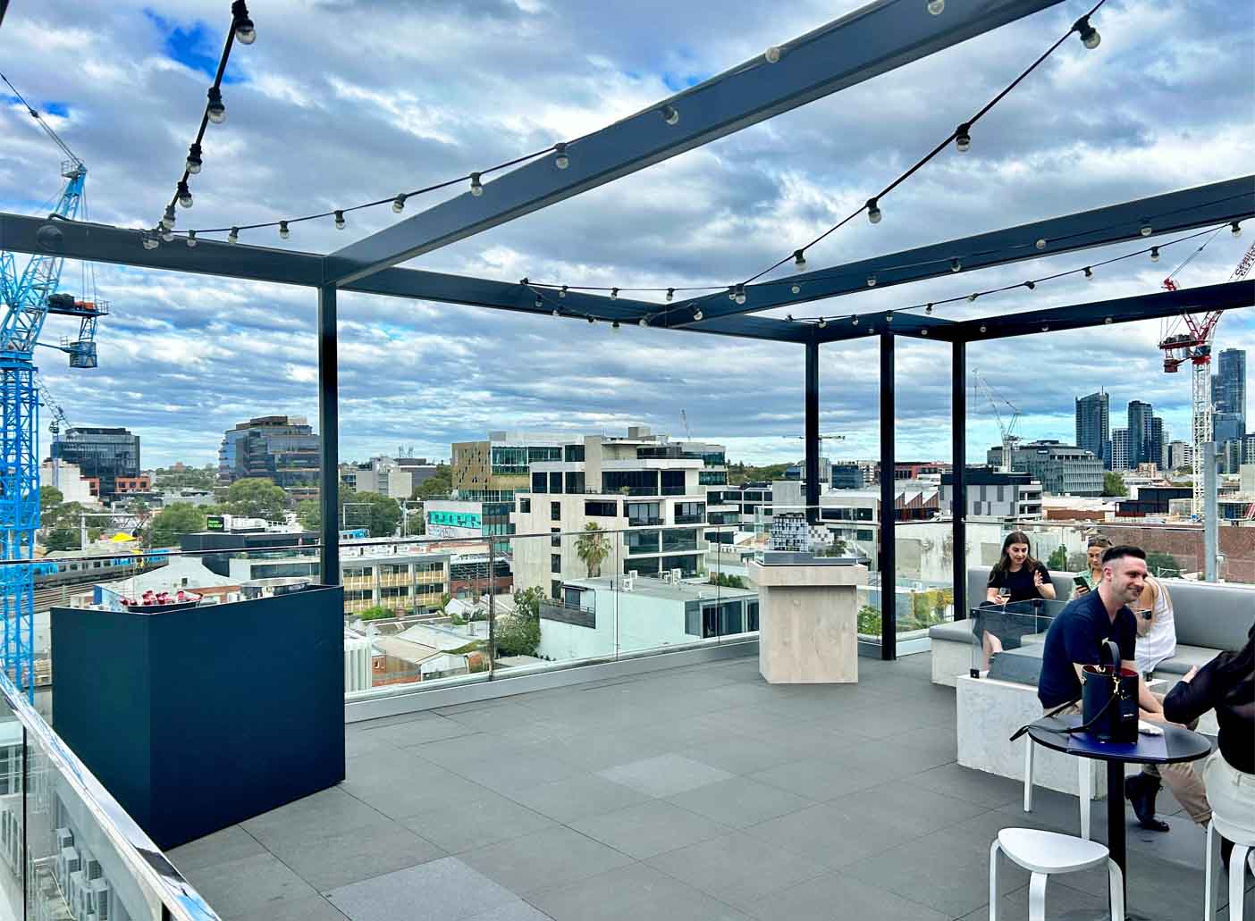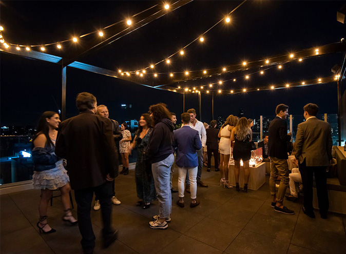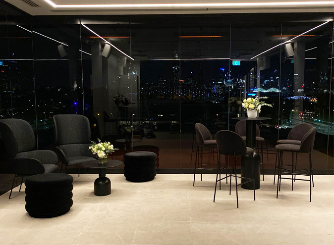 On level six, Ville room, there are two luxurious mobile cote d'azur marble bars, and ambient LED track lighting (completely dimmable, of course). Or, if your function starts in the day, the le Ciel Event space is flooded with gorgeous natural light. Access to the Terrace elevates this space to the next level, with magical festoon lighting, a fire pit and cushioned bench seating.