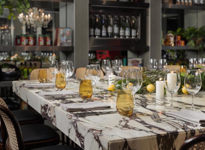 Featuring two private rooms, The Locanda Private Dining Rooms and The Locanda Deli, both interconnecting and tucked away on Lt Bourke St. Upon entering it is instantly recognisable by its large Italian marble share table and overhanging chandelier. The space comfortably seats intimate groups of 14 guests and 30 guests cocktail style. For larger groups, our Private Dining Room is sectioned off from our restaurant and is surrounded by two floor to ceiling wine cellars.