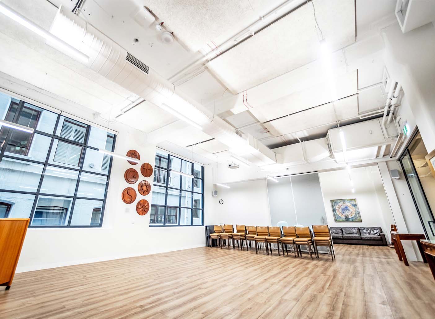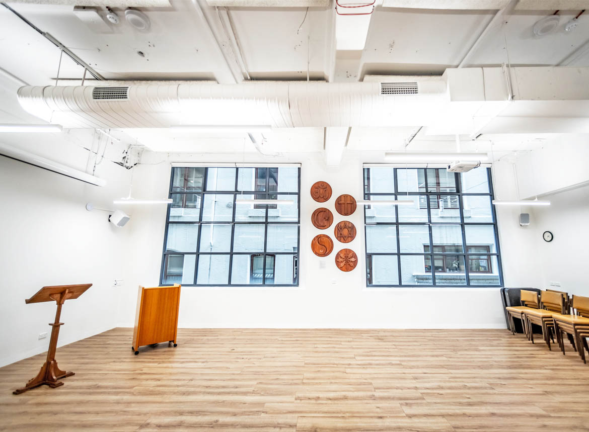 Invite up to 80 guests to join you at this venue, bathed in natural sunlight and conveniently adjacent to a kitchen and bathrooms.