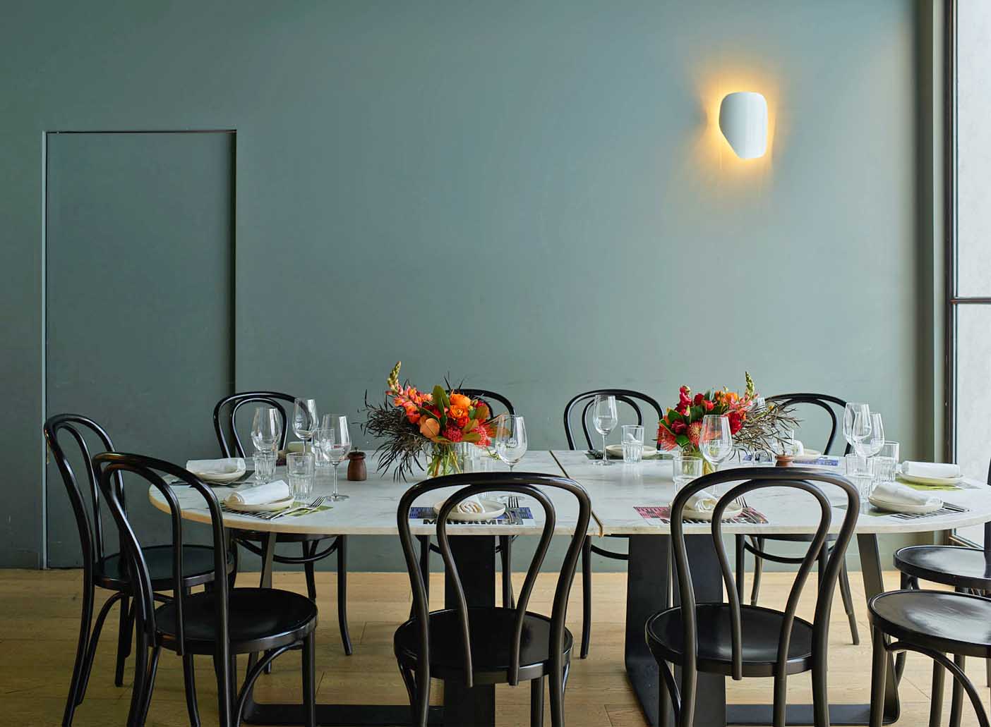 The Marble Table and Private Dining Room are adjoining spaces that can be utilised for multiple purposes. Alternatively the Marble Table area can be used for welcome drinks, followed by a seated meal in the Private Dining Room.