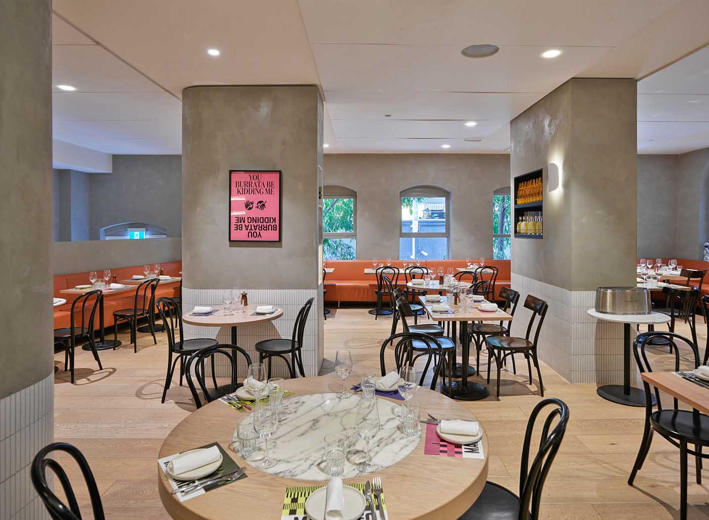 Soak up the Marameo vibe in the Main Dining Room and host your guests in a space that celebrates fun and food, with a mix of banquette seating, round and square tables.