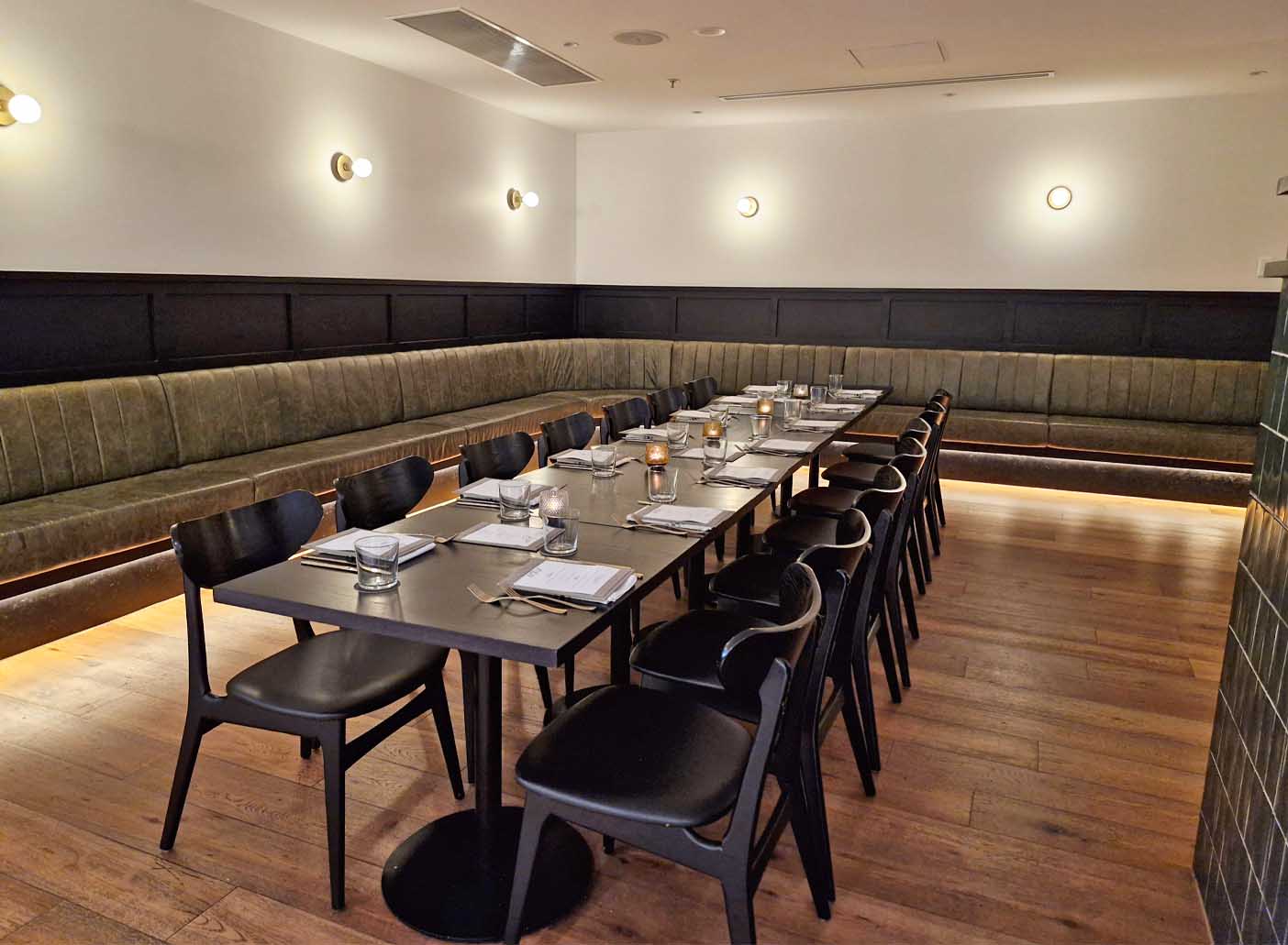 The restaurant is the ideal spot for after work gatherings and private celebrations with its modern art deco design, special event nights and pleasing food and drink selection.