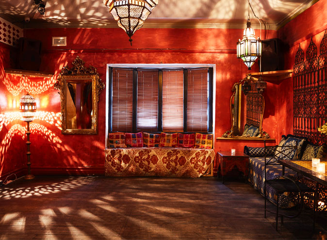 Located upstairs at the venue, Morocco Lounge is beautifully themed with exquisite Moroccan furniture and décor. This hidden oasis will take your breath away as you open the door and reveal the magic inside.  This space comes with a private bar, luxurious daybeds, sound system, dance floor, TV and an amazing ambiance and décor that will transport you to the exotics of Morocco. Ideal for larger events, this room can cater for up to 114 guests cocktail style. This space is perfect for birthday parties, engagements, & corporate events.