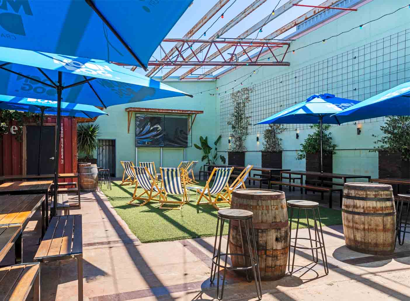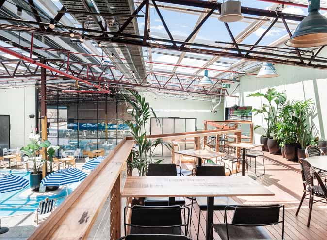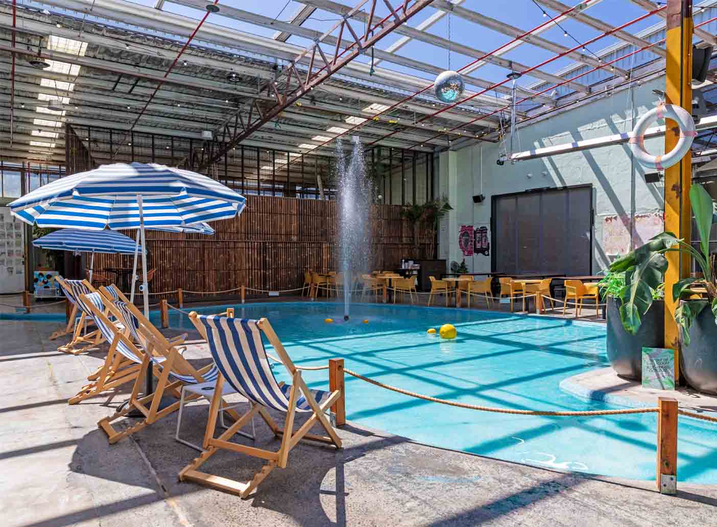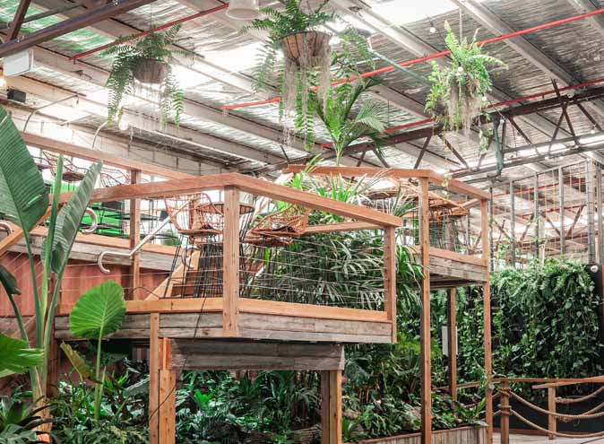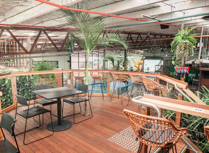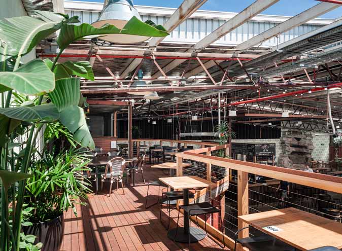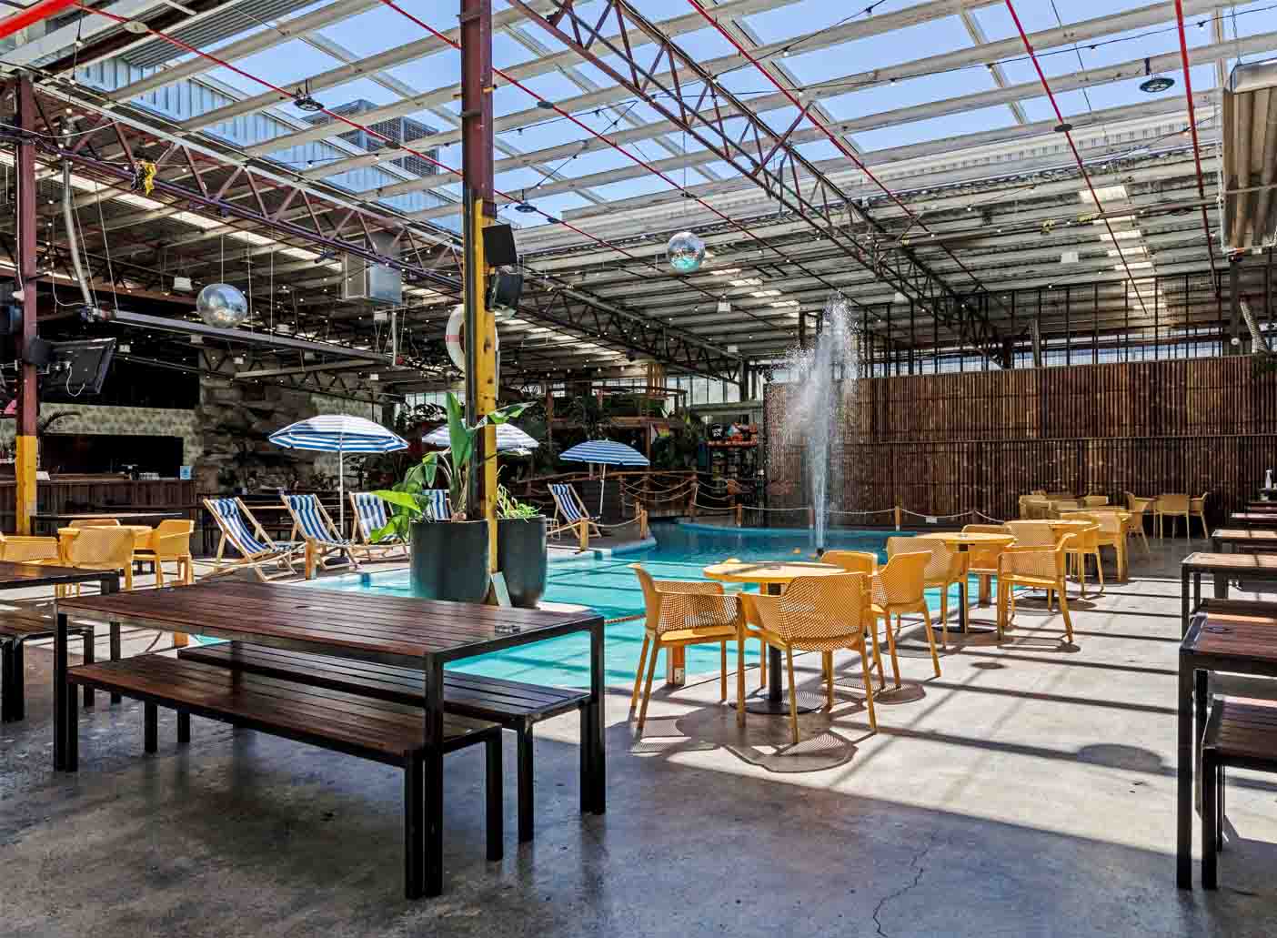 Moon Dog World is a jungle themed warehouse bar tucked away in the side streets of Preston, just north of the CBD. The 700 capacity venue offers food and drinks and many places to sit amongst the shipping containers, greenery, deck chairs and lagoon.
