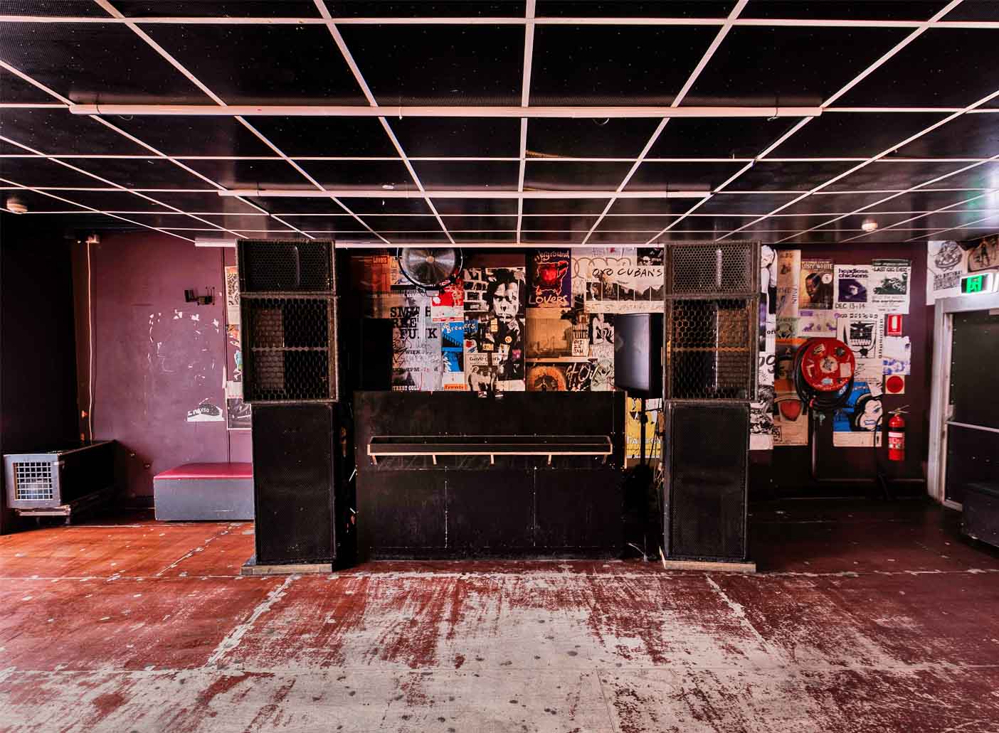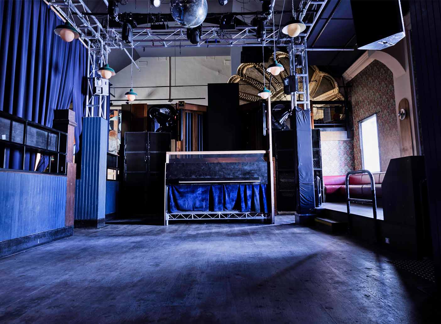 The professional lighting setup in the Main room includes strobes, blinders, static washlights, and moving light heads, creating an enjoyable and exciting mood. Top it all off with a smoke machine and disco ball!
