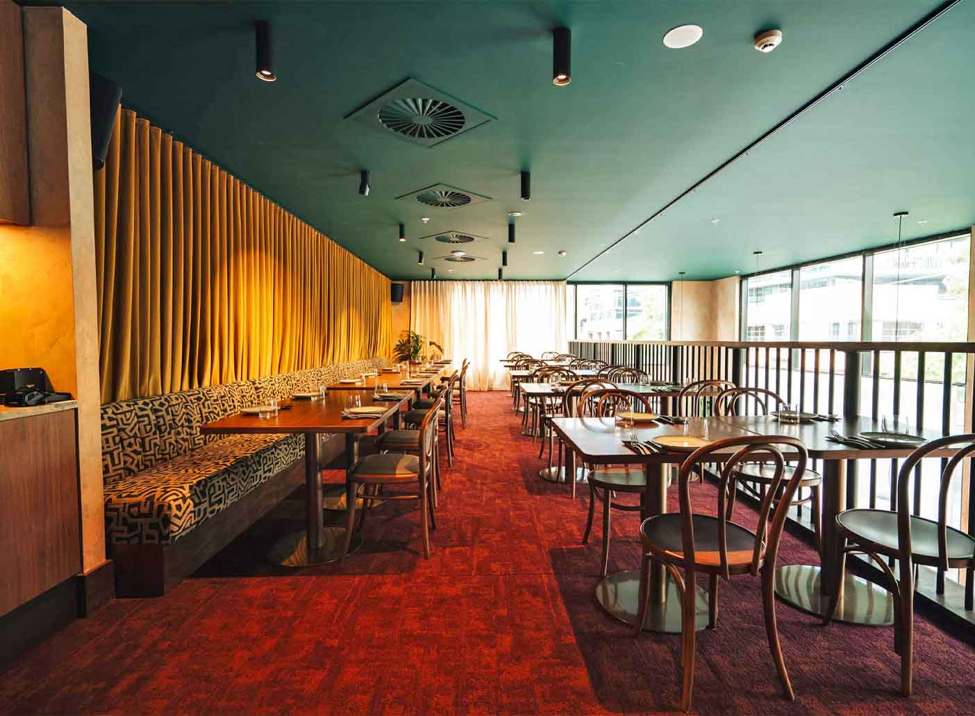 Filled with unique decor, vibrant patterns and modern fittings, the Dining Room is the perfect light-filled intimate event space.