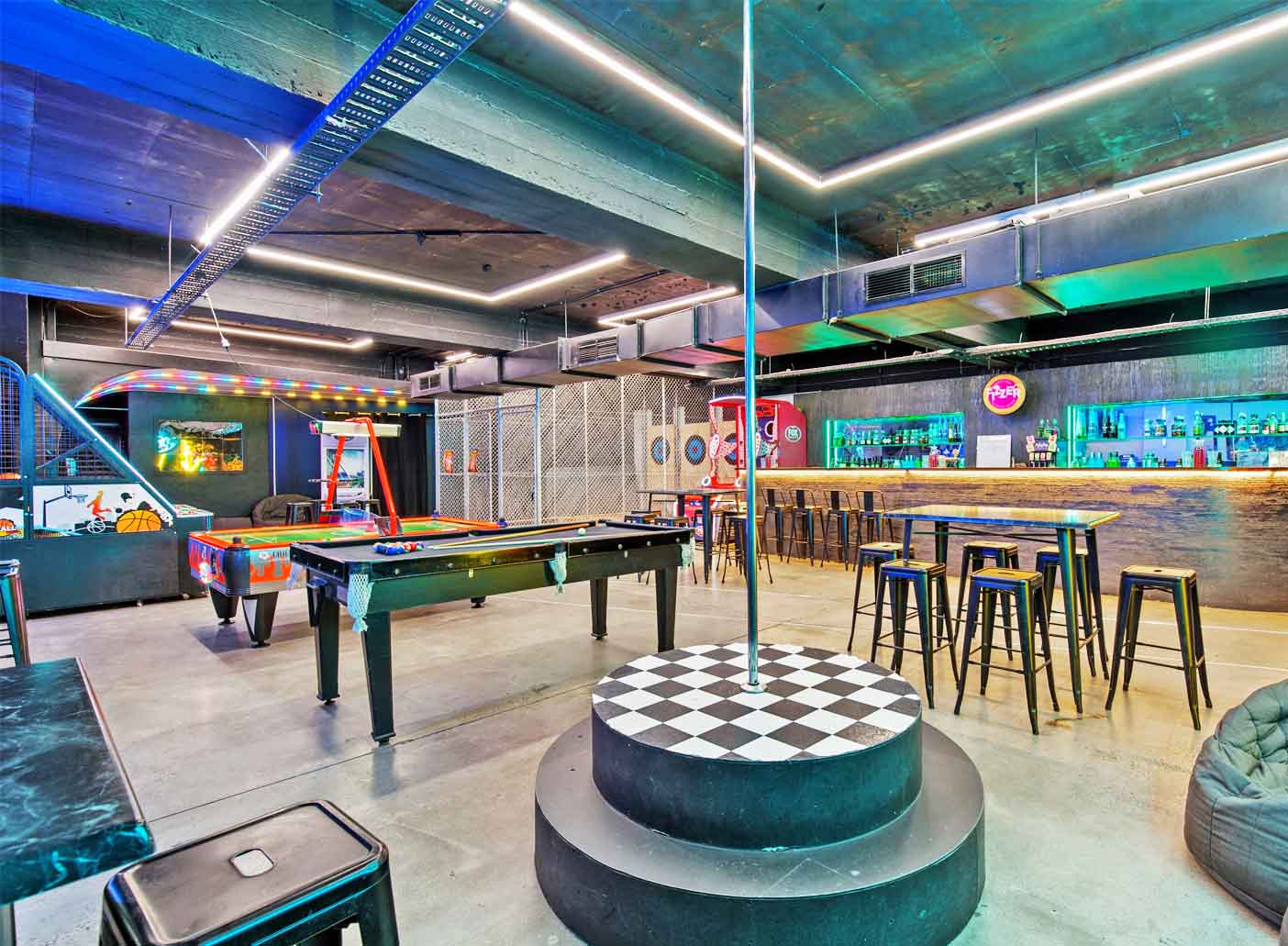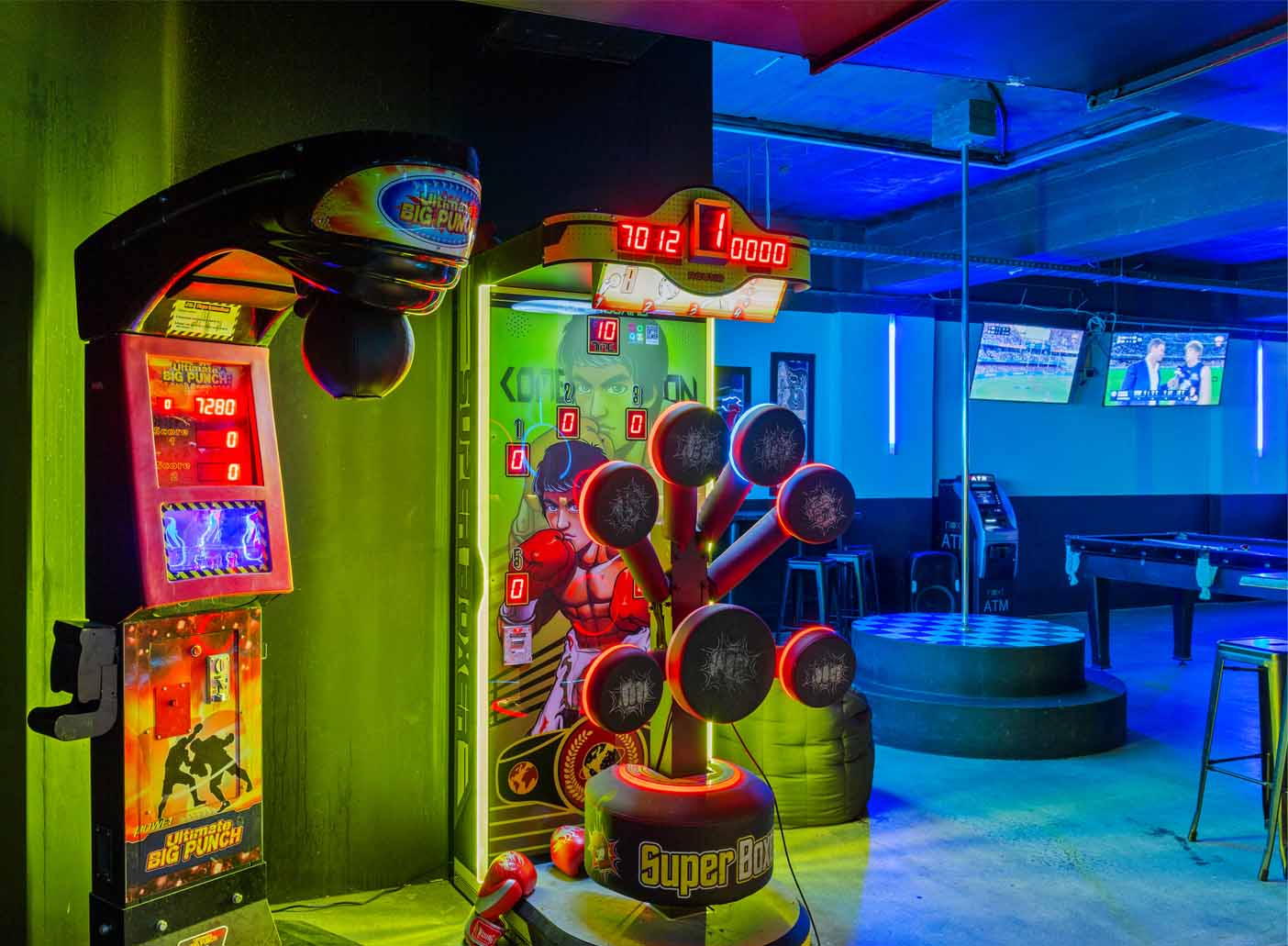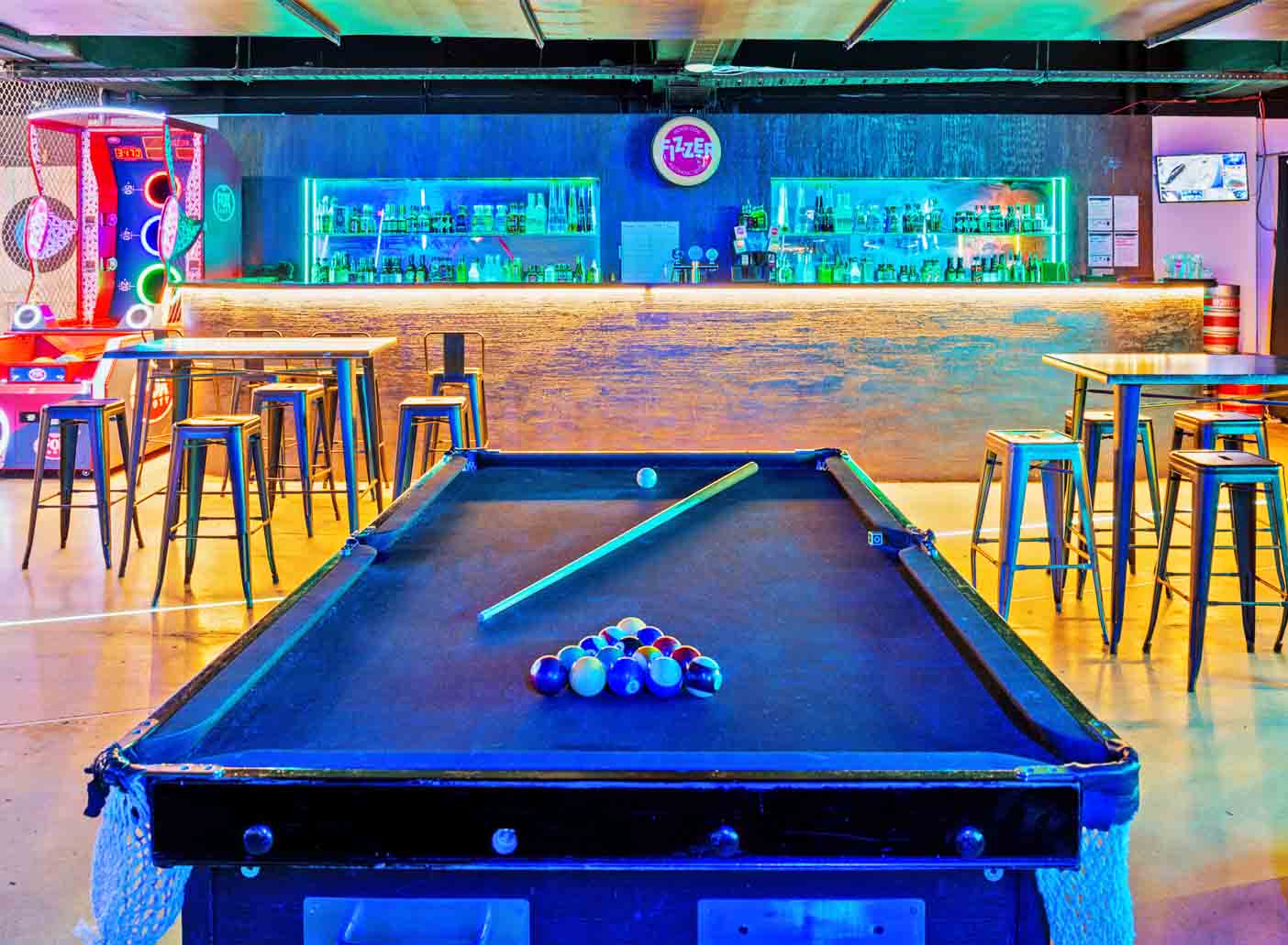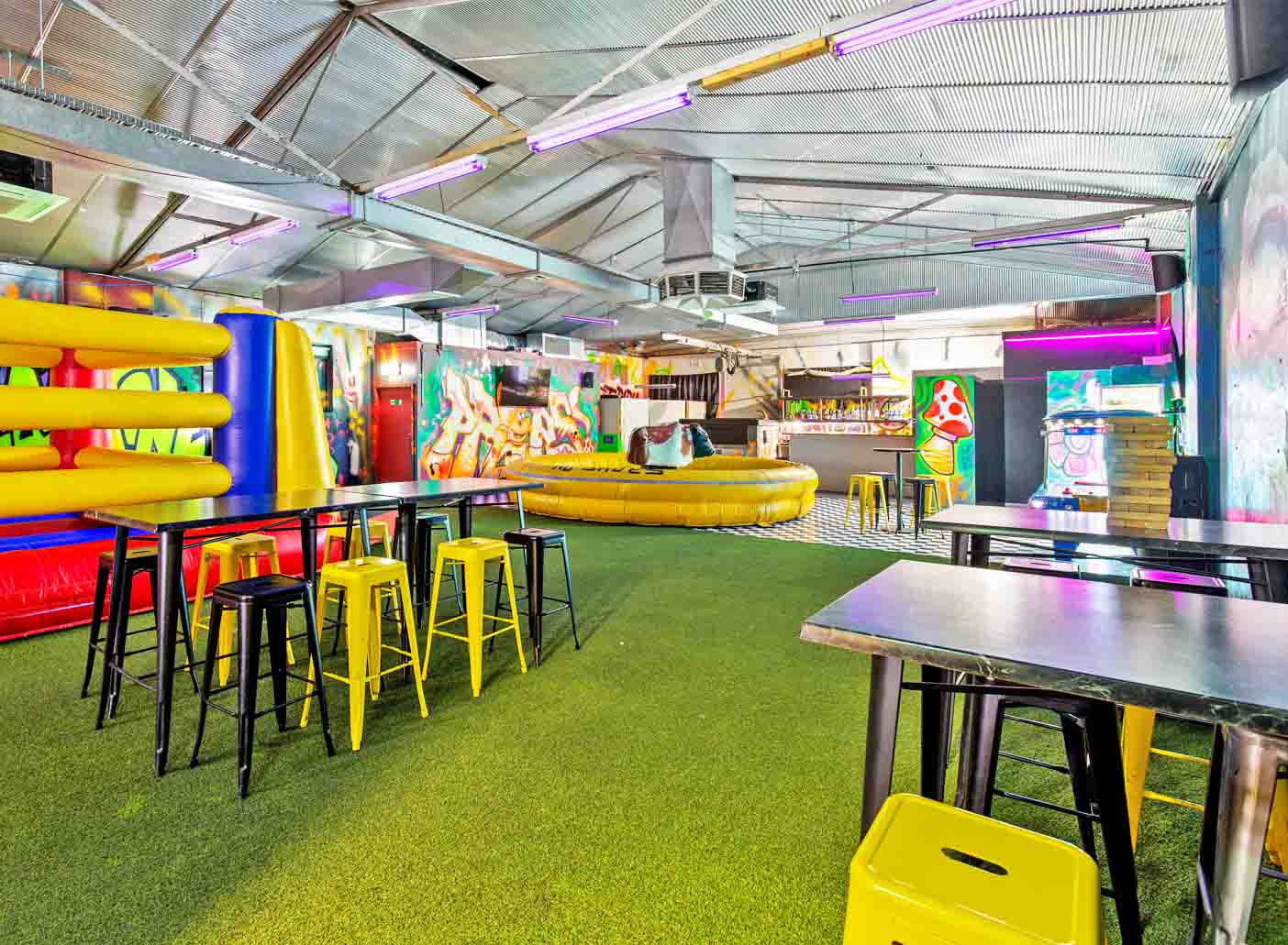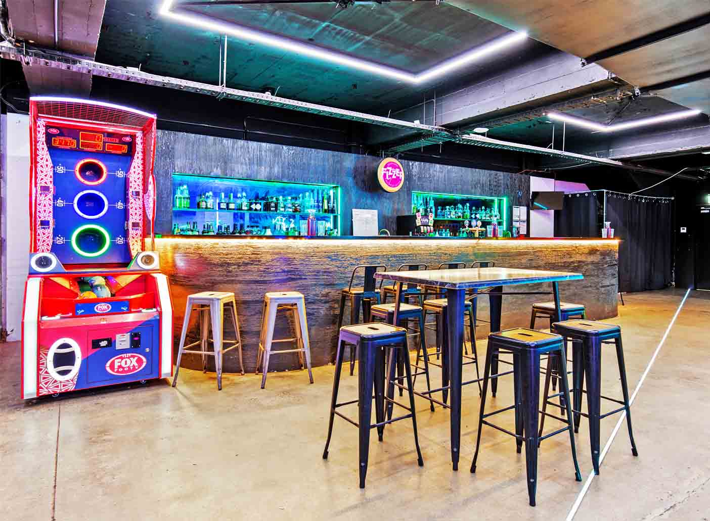This enormous location, spread across two storeys, offers 900 square metres of adaptable space to host your upcoming event and make it memorable. A private VIP area with space for up to 40 people, a pool table, arcade games, a vast dance floor, and more are available on the ground floor. A mechanical bull, additional arcade games, another dance floor, two sizable bars on either side of the floor, and other amenities can be found on Level 1.