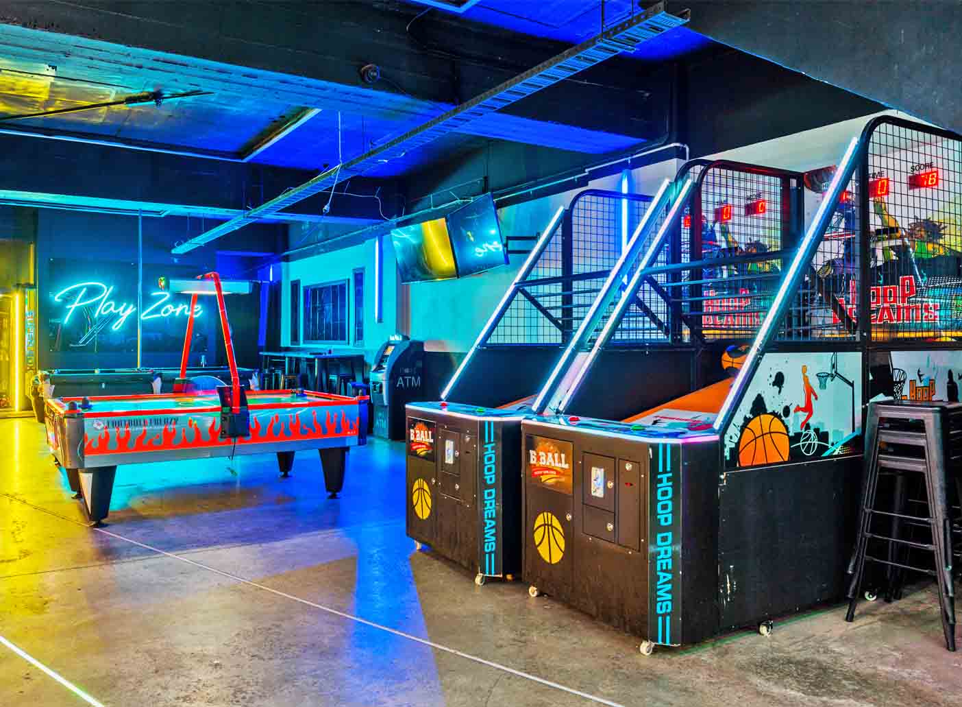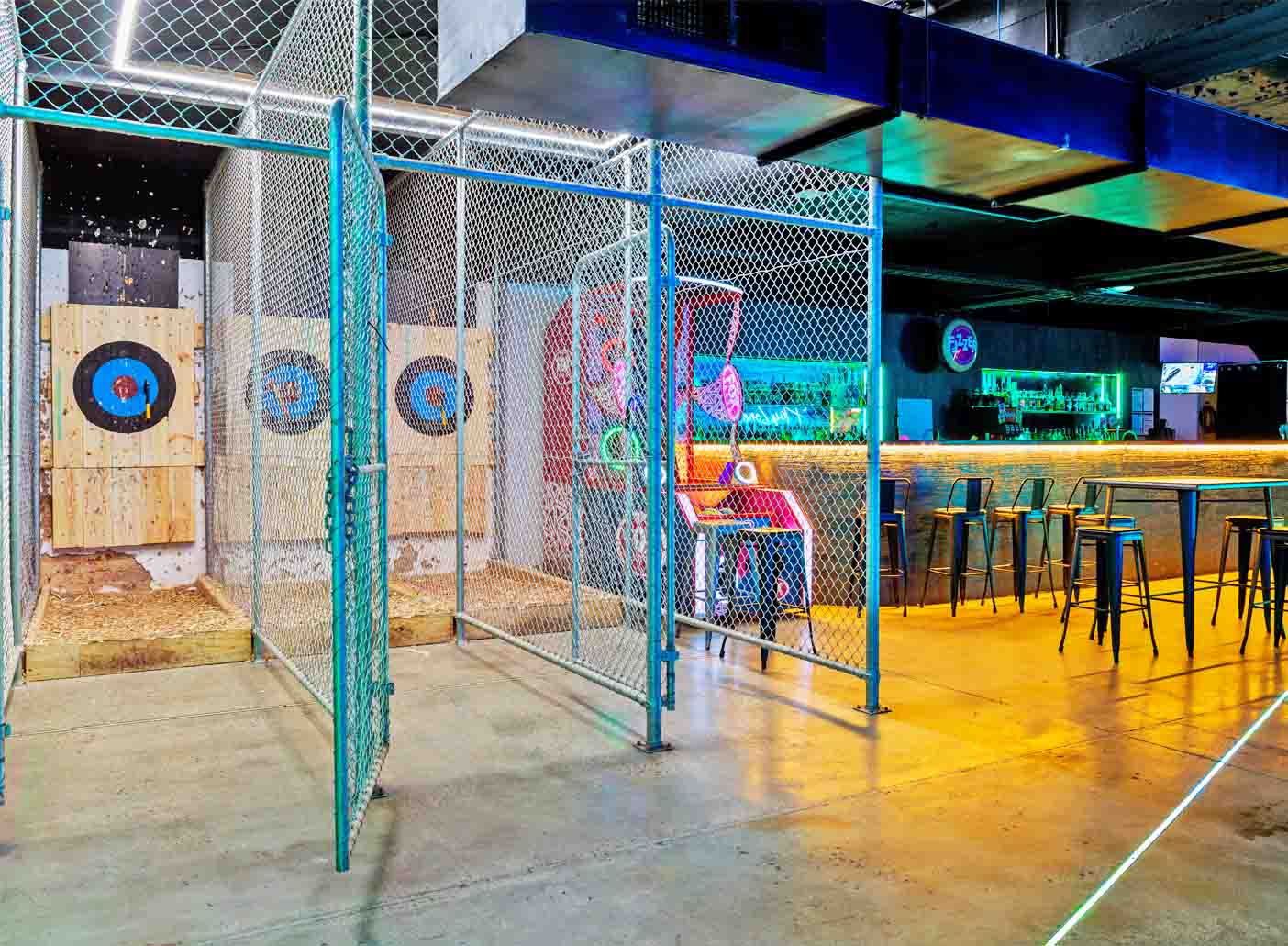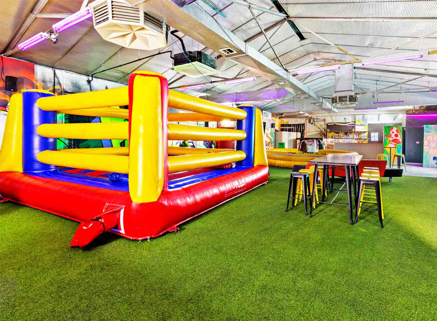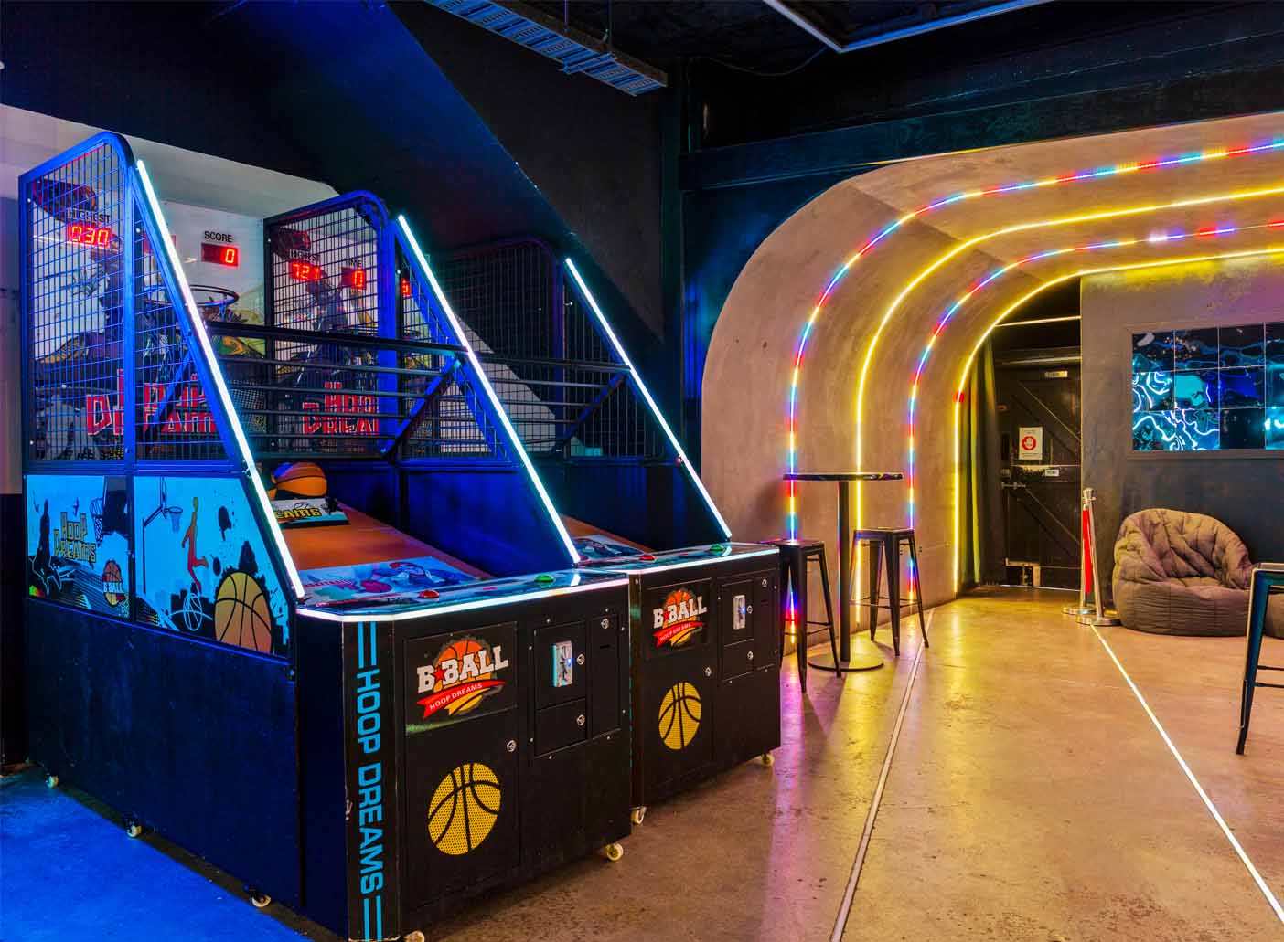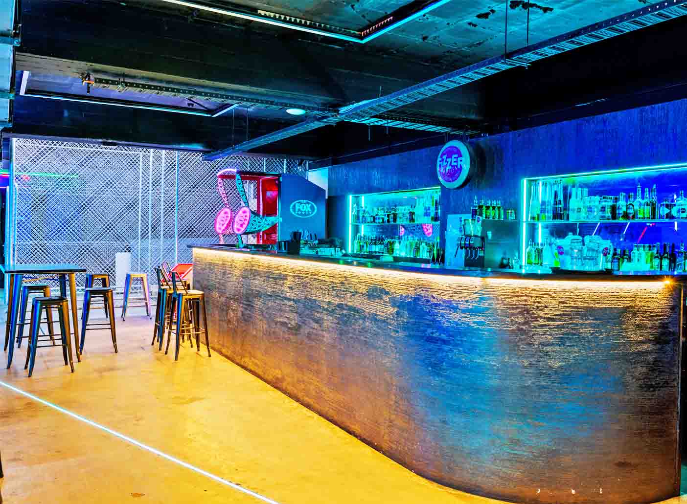 This enormous location, spread across two storeys, offers 900 square metres of adaptable space to host your upcoming event and make it memorable. A private VIP area with space for up to 40 people, a pool table, arcade games, a vast dance floor, and more are available on the ground floor. A mechanical bull, additional arcade games, another dance floor, two sizable bars on either side of the floor, and other amenities can be found on Level 1.