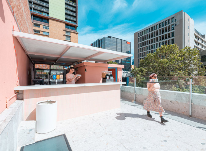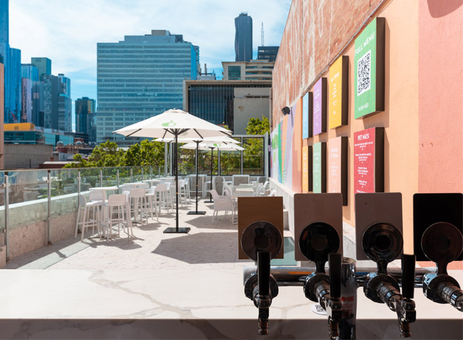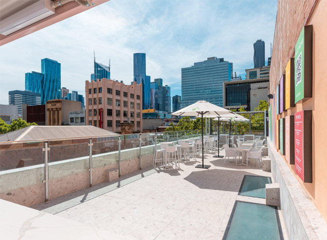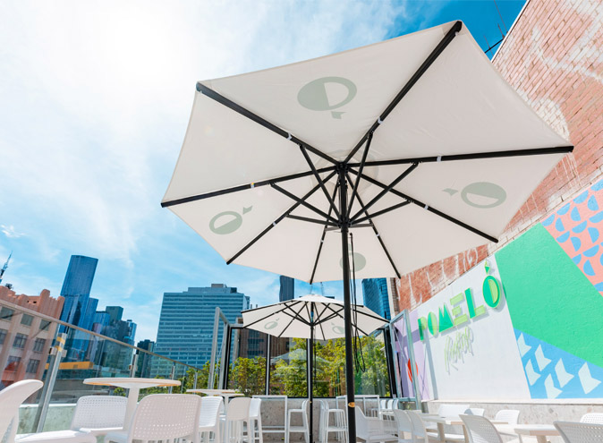 Pomelo Rooftop is the Level 3 rooftop on the corner of Bourke and Russel Street in Melbourne CBD – with the entrance via a stairwell on Melbourne Place.