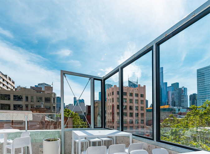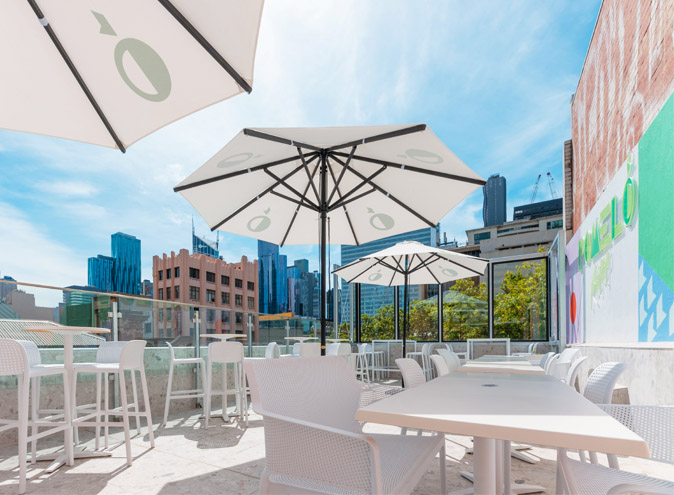 Pomelo Rooftop is located on the corner of Bourke and Russel Street in Melbourne CBD on the Level 3 rooftop; with the entrance via a stairwell on Melbourne Place.