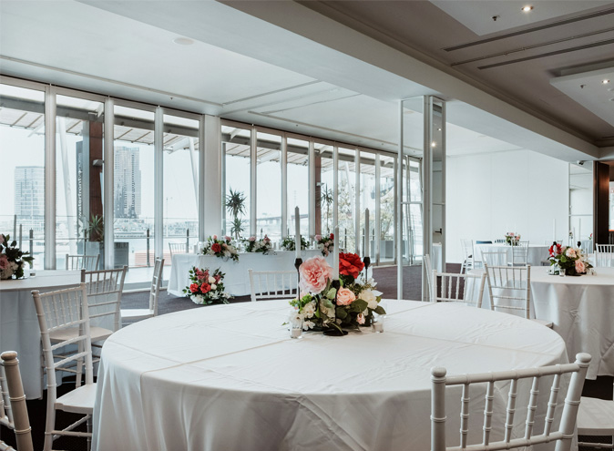 There are two separate entrances to choose from - The Waterfront Space or the Habourview Room. The Waterfront Space comprises of a 17 metre stone bar and utilises a dark toned colour palette throughout the room; thus creating an intimate and modern atmosphere. On the other side, The Harbourview Room is filled with beautiful light which streams in from the floor to ceiling windows and is suitable for all occasions.