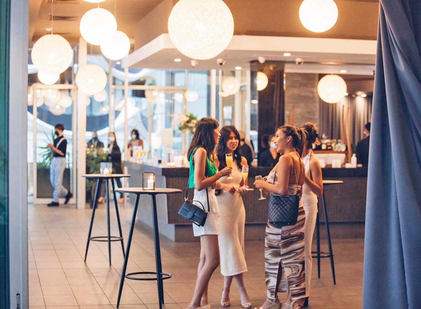 Featuring seventeen metres of black stone under-lit with custom LED lights and impeccably styled cocktail tables with flourishing touches, the Waterfront Bar is the ideal area for your next private event.