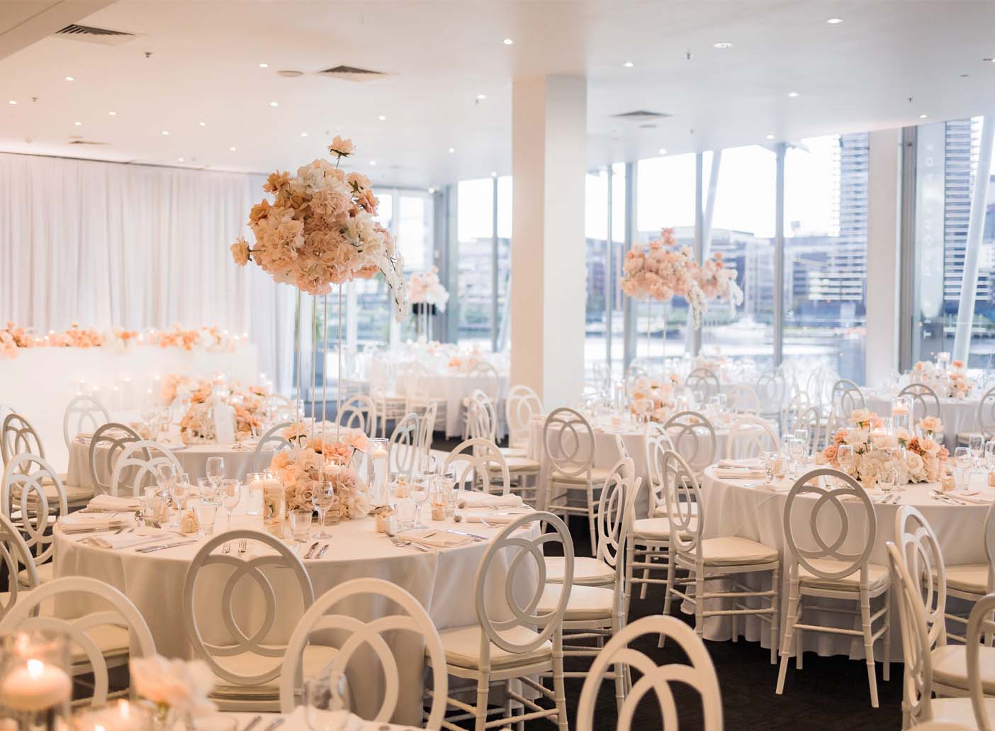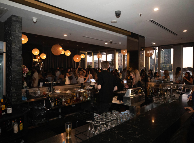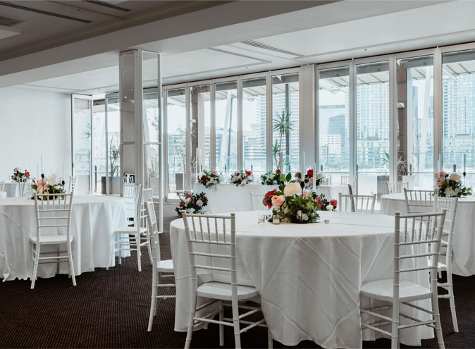 Welcomed by a spacious undercover balcony for all occasions and Melbourne weather, the multiroom venue hosts two separate entrances. The Waterfront space features a 17 metre stone bar, with darker tones throughout the room. On the other side is the light filled Harbourview Room with floor to ceiling windows. Regardless of the occasion, The Promenade Docklands features a neutral design throughout creating a contemporary, yet elegant space.