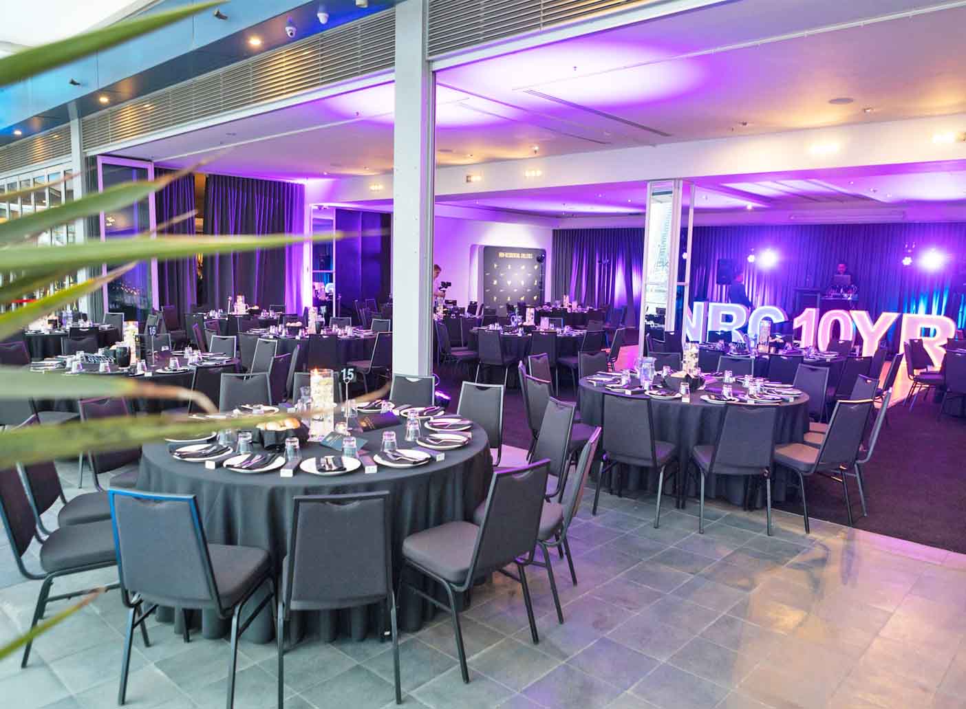 This room features seventeen metres of black stone bar under-lit with custom LED lighting. Styled with cocktail tables and furnitures, it is the perfect space for your next private event.