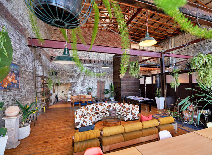 The loft is an exclusive, secret destination for impressive events, launches, exhibitions, shoots and more, with towering 9m ceilings, huge windows, fire-scarred walls, exposed beams, and quirky plants and furnishings.