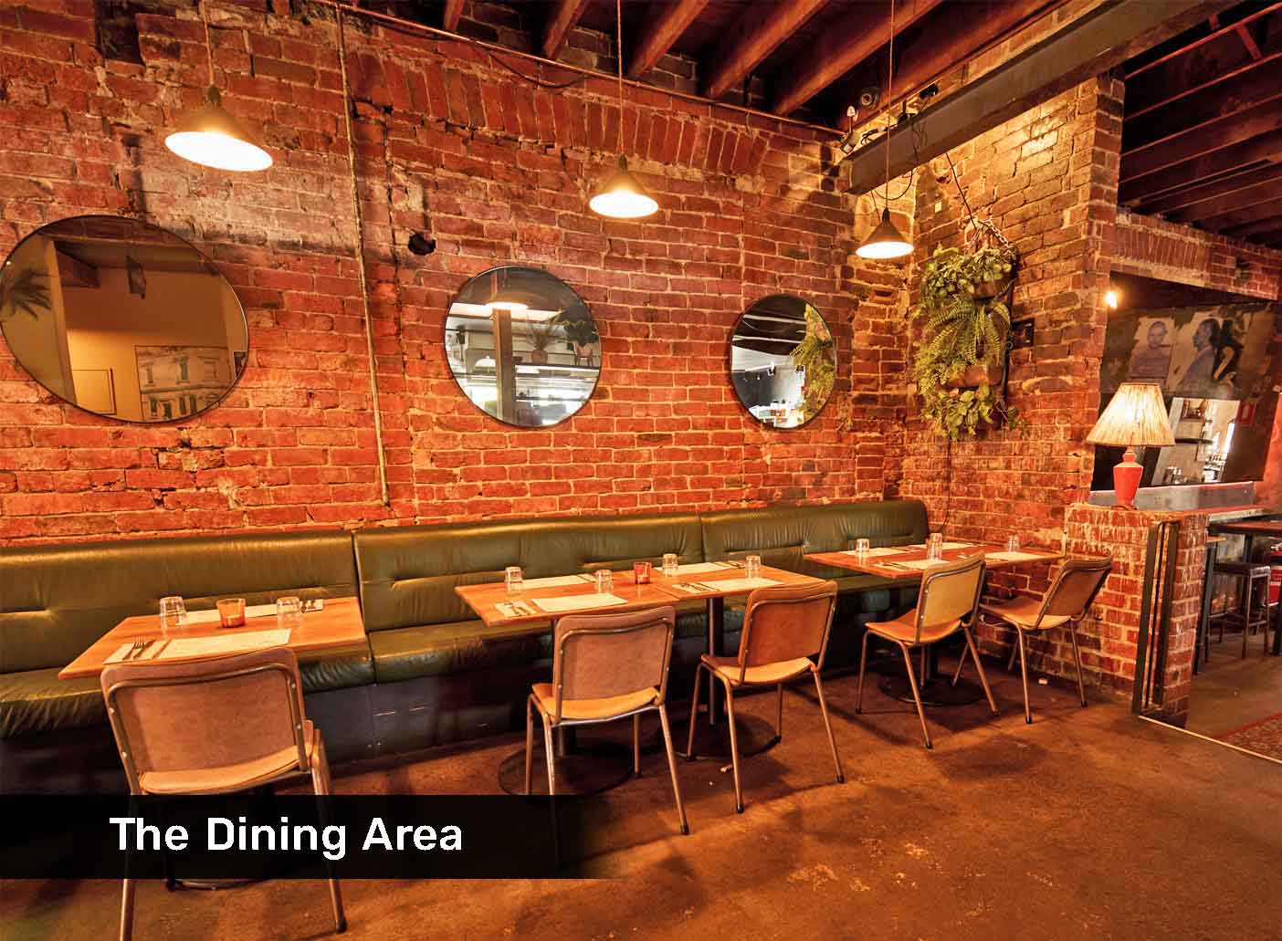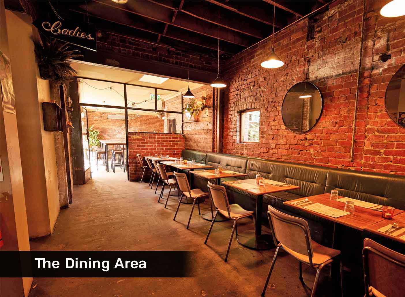 Fully stand-alone and private, with a functional bar with 4 taps, cocktails and house and top shelves spirits, a decked-out sound system and DJ equipment, a dance floor and a Disco Ball, The Green Room is an entire upstairs space for revelry to create your best memories yet. She’s old charm with a new face built to host up to 120 guests for a cocktail do, or up to 50 of your nearest and dearest for a sit-down feast. The separate lounge provides a quiet corner for conversations.
