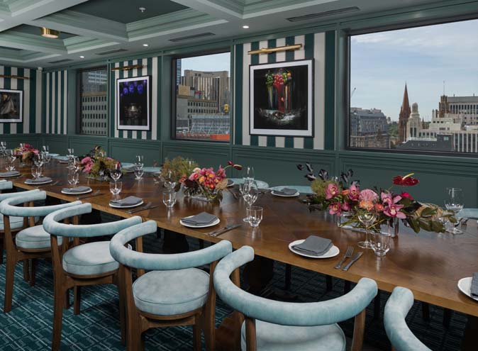 Room 1954's Private Dining Room has the most breathtaking views of Melbourne's city skyline its own distinctive style and a warm, convivial atmosphere. It's the perfect space to make a statement. The dining room can seat up to 26 guests and also offers private lift access.