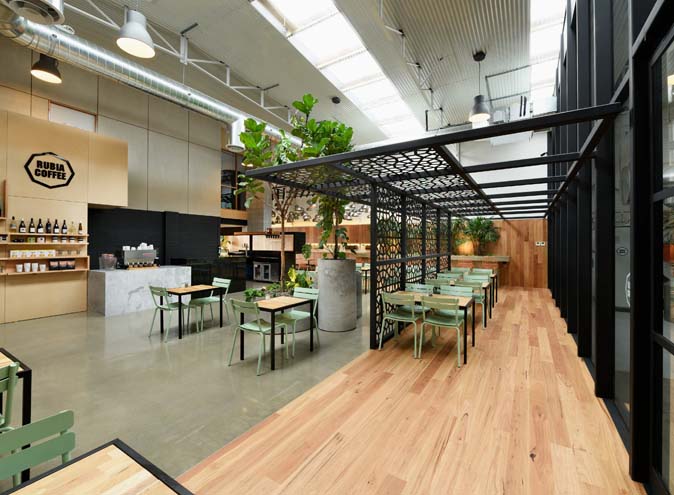In the heart of Bayside Melbourne’s industrial landscape, Rubia Cafe is a world class venue for private and corporate entertaining. Originally built to house a brick manufacturer, Rubia Cafe is a fully architecturally designed cafe and event space that features unique lighting, high ceilings, coffee inspired sculptures, dramatic concrete fixtures and tonnes of natural light and greenery.