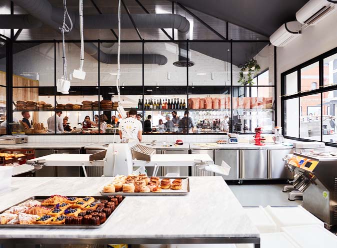 Here you can watch the theatrics of their bakers, pastry chefs and chefs at work in the 500sq meter light filled, open warehouse.