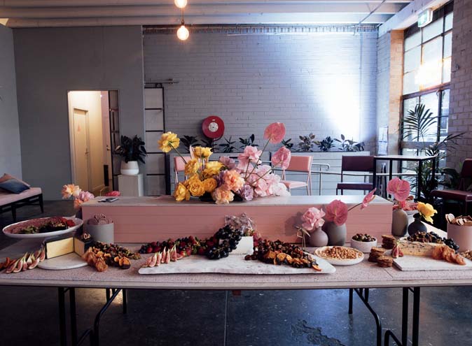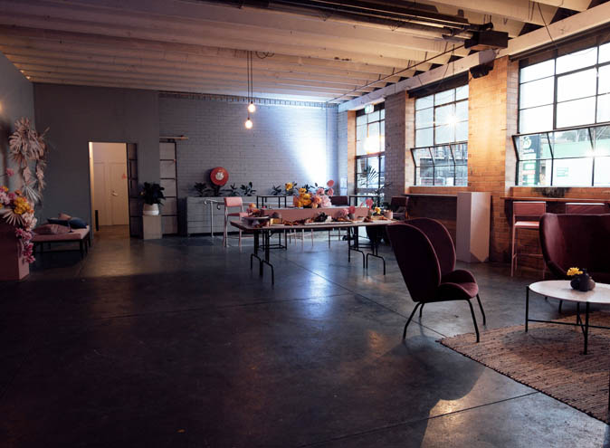 Small Talk Events Space is located behind the iconic Taranto Shoe Shop in Abbotsford. This former clothing manufacture, print warehouse and most recently the first home of Abbotsford’s local bar Lulie Street Tavern. Small Talk is a balanced blend of inner city industrial warehouse meets clean walled, carefully curated colour palette.