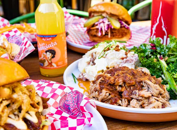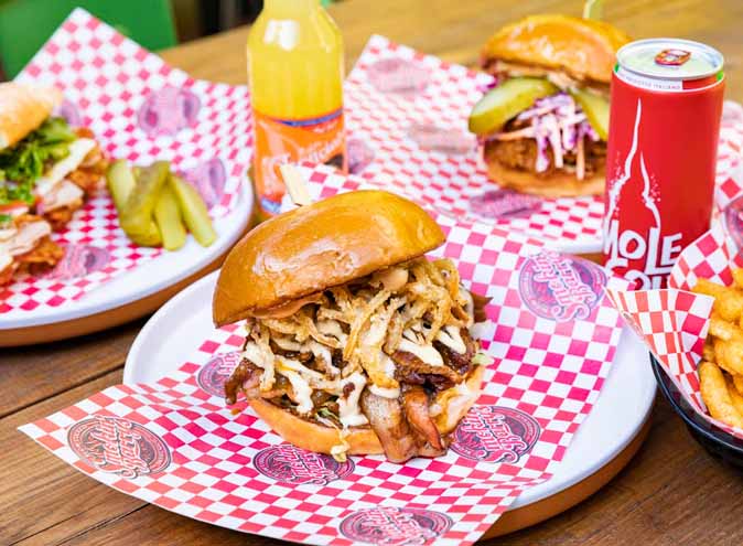 They  specialise in American style smoked BBQ favourites like Smoked BBQ Ribs, 16 Hour Smoked Brisket, 16 Hour Smoked Pulled Pork, Burgers, Sliders, Mac 'N' Cheese, Slow cooked chicken and epic fresh salads. They even do brownies & cream and cakes for dessert!