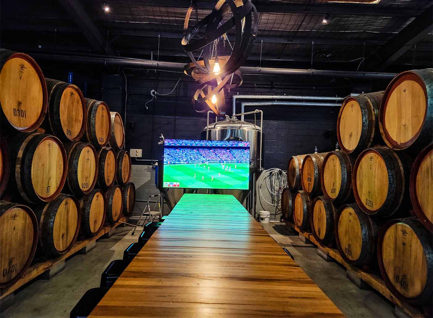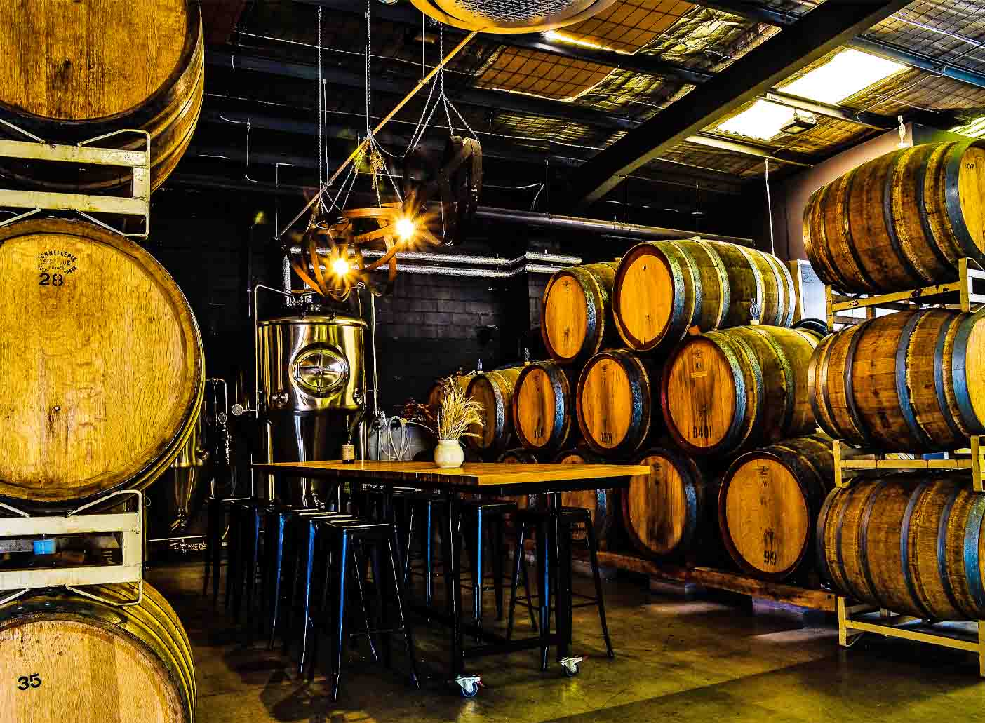 Adjacent to Steam Jacket Brewing's fully functioning brewery with over sixty French and American oak barrels, kick back in the back bar.