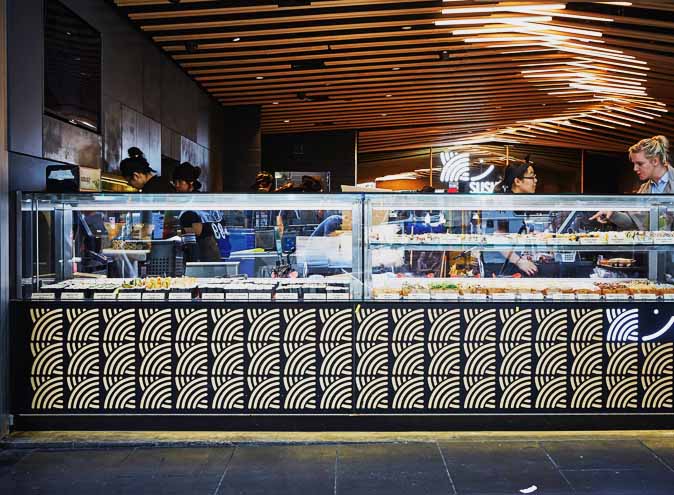 Nestled nicely within the bustling Swanston street, Sushi Hub stands out with it's modern take on traditional Japanese artwork. You'll have your breath taken away by the design award winning architecture that sets an oriental and individual atmosphere for sushi lovers. The overarching wood paneling creates a sleek and expensive look whilst the food remains affordable. The dark interior is well lit with decadent artificial lighting.