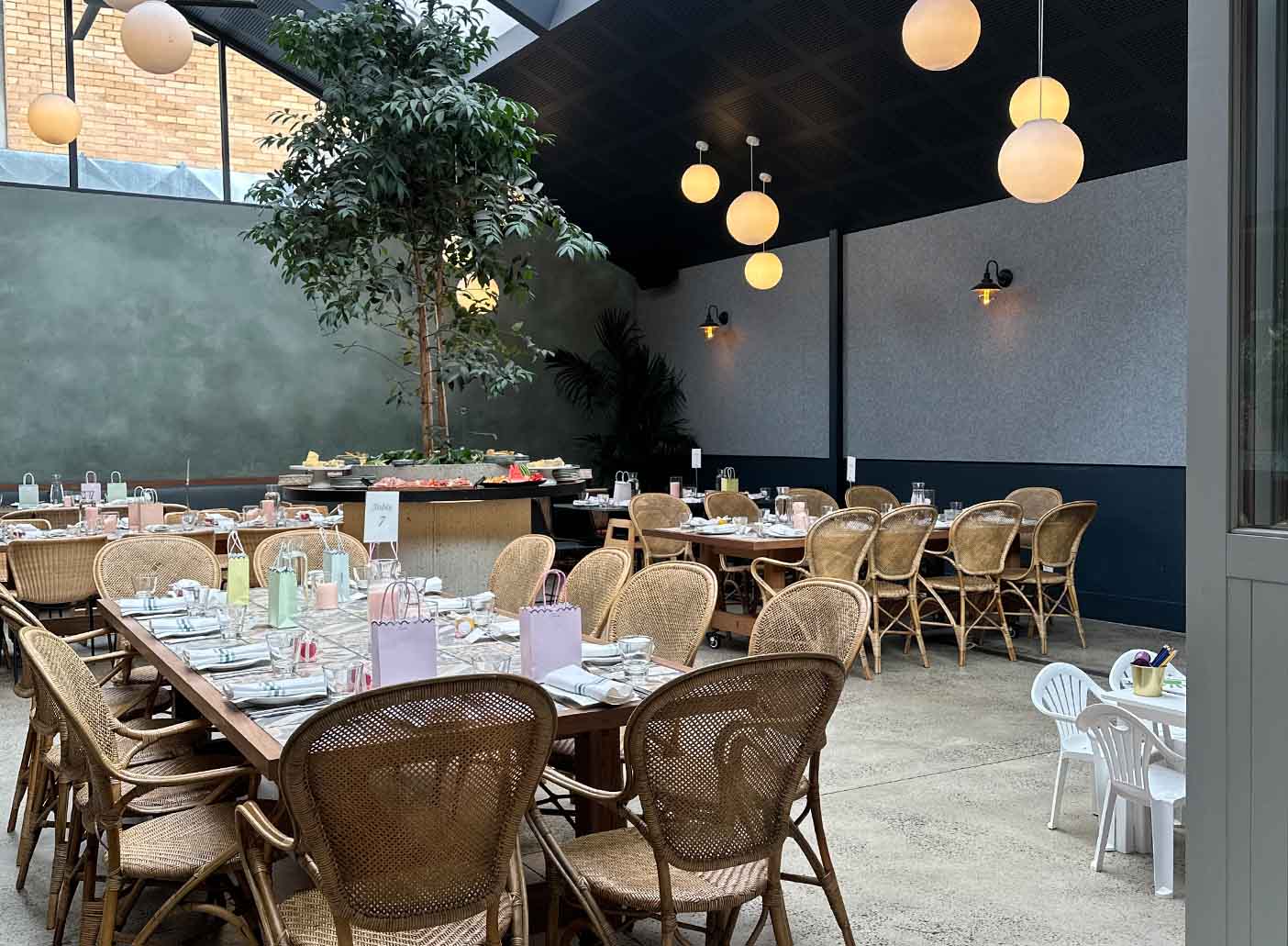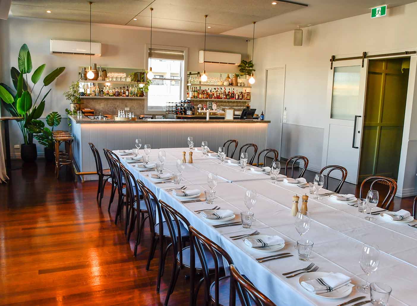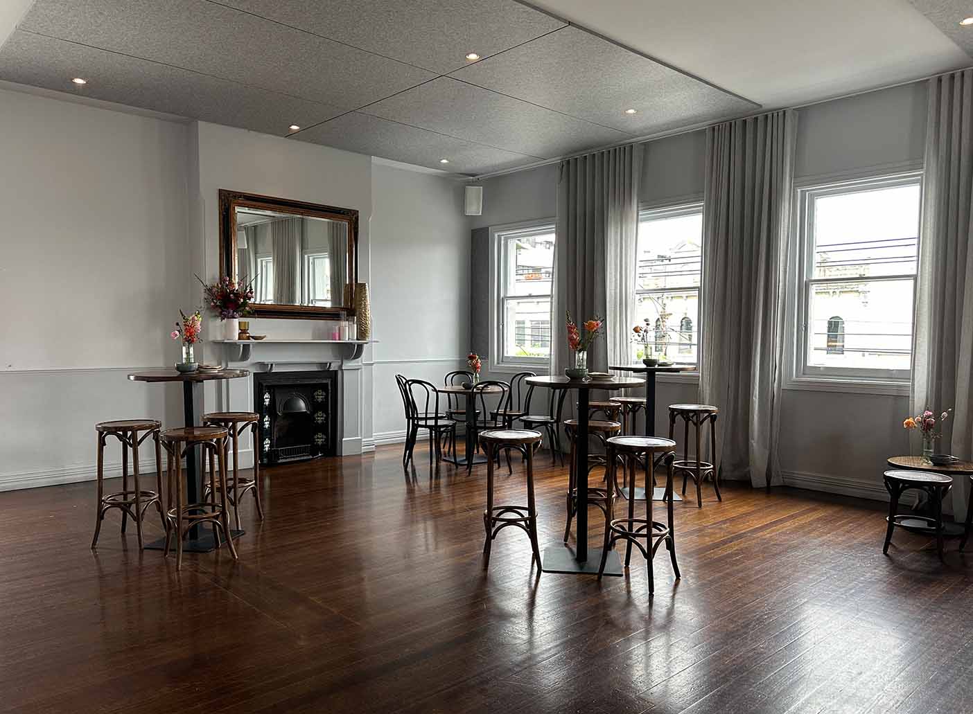 Once the car park of a historic bank, The Pavilion has been beautifully transformed into a stunning event space, now filled with abundant natural light that floods the room through large windows. Featuring impressive 6-meter-high ceilings and a striking Queensland Kauri Pine centrepiece, this space is designed to captivate and leave a lasting impression on your guests. Fully equipped with your own dedicated bar and an independent sound system, The Pavilion is ideal for any style of event, whether you're hosting a sophisticated wedding, a corporate function, or a large celebration.