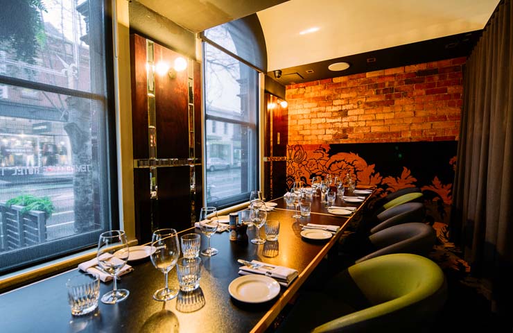 As far as function space go there’s quite a few to pick from here, all as effortlessly cool as the other. For larger celebrations the upstairs Lounge, sumptuously designed for private functions with a bit of an air of exclusivity and excess with lush red velvet and chrome décor.