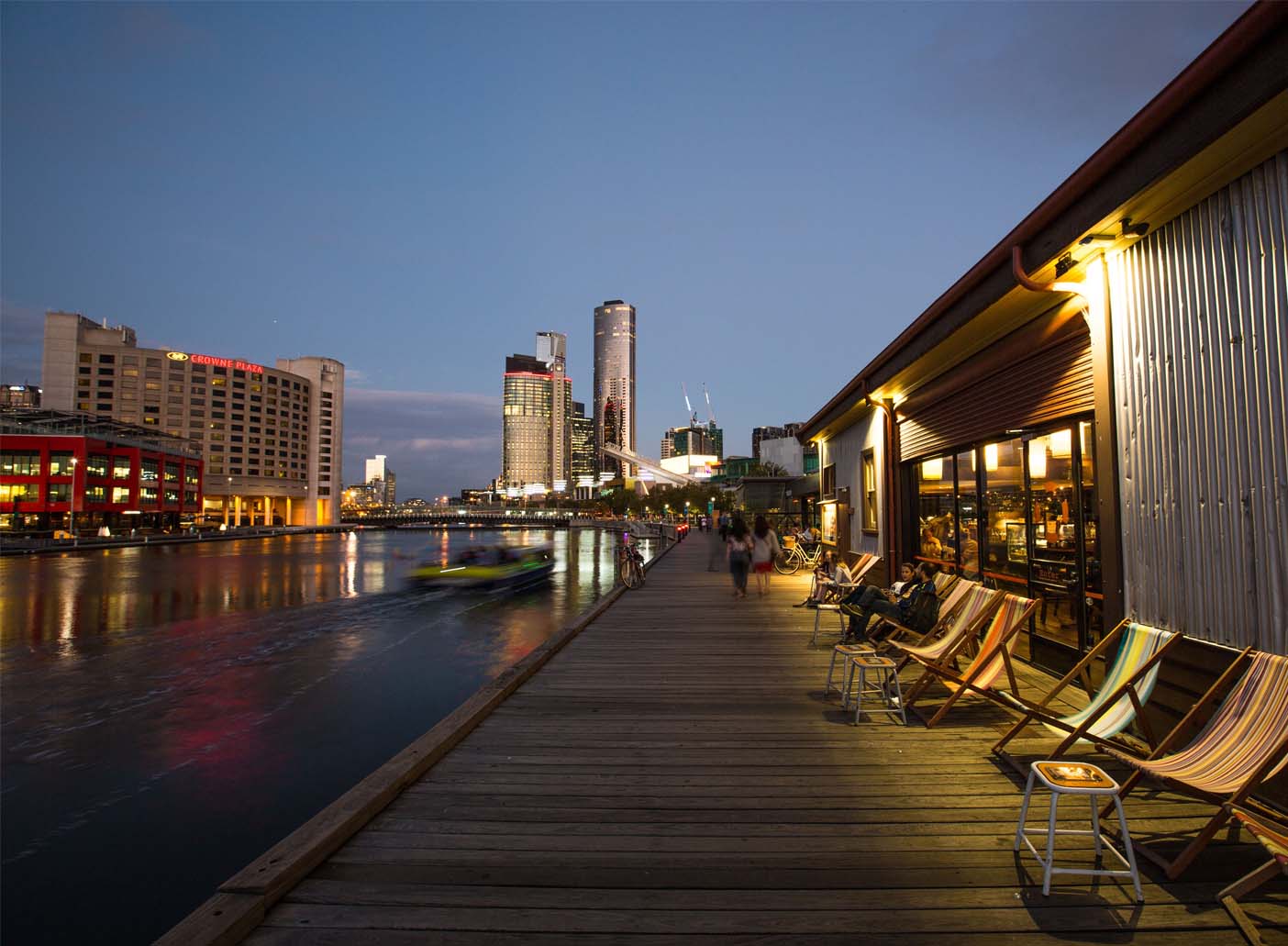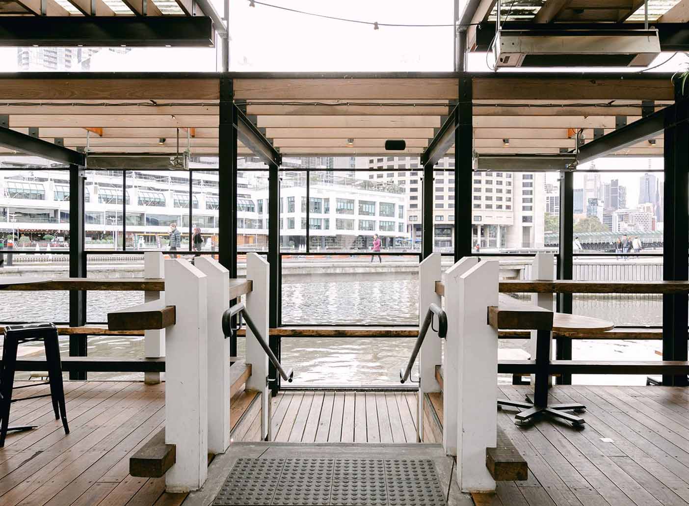 Nestled beside Melbourne Convention & Exhibition Centre, DFO and the Polly Woodside sailing ship is a riverside highlight of the Melbourne drinking and dining scene.