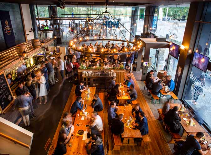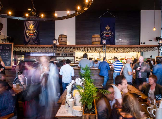 The Hof Downtown is a German restaurant and Bavarian beer hall located in Docklands, just across the road from Etihad Stadium.