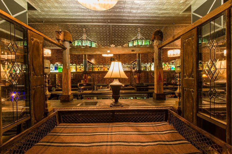 The Holy Grail is a unique and beautiful bar that resembles an old ship. This bar’s exterior encompasses a tall light post at the centre of its roof, a large, welcoming threshold and two metal embossed decorative window frames with large circular patterns. STUNNING!