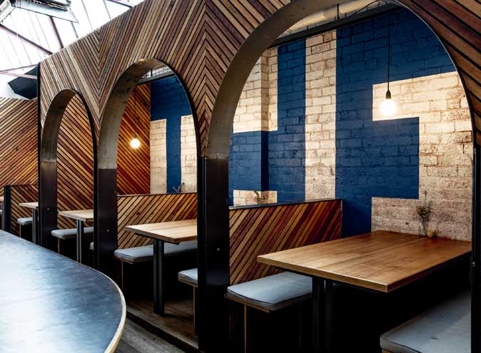 Timber lined booths offer an intimate dining and drinking setting. A large communal table in the heart of the space caters to groups of up to 10, and a semi private dining room can cater to groups of us to 20 guests, there is a dog friendly, covered courtyard to cater to groups of all sizes up to 20 guests.