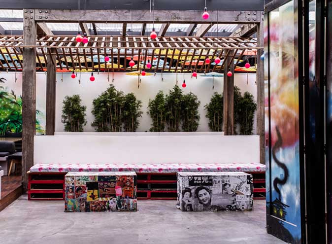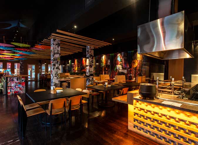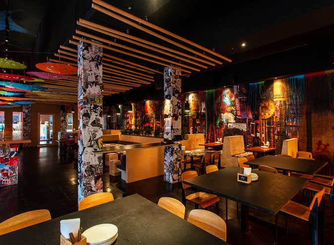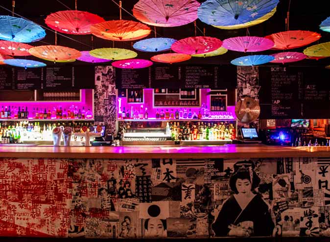 With a ceiling of vibrantly coloured umbrellas hanging over a 10-metre-long bar, a 16-metre-long graffiti mural and neon signs, Tokosan is a cocktail bar and restaurant which is reminiscent of the vibrant Tokyo city.