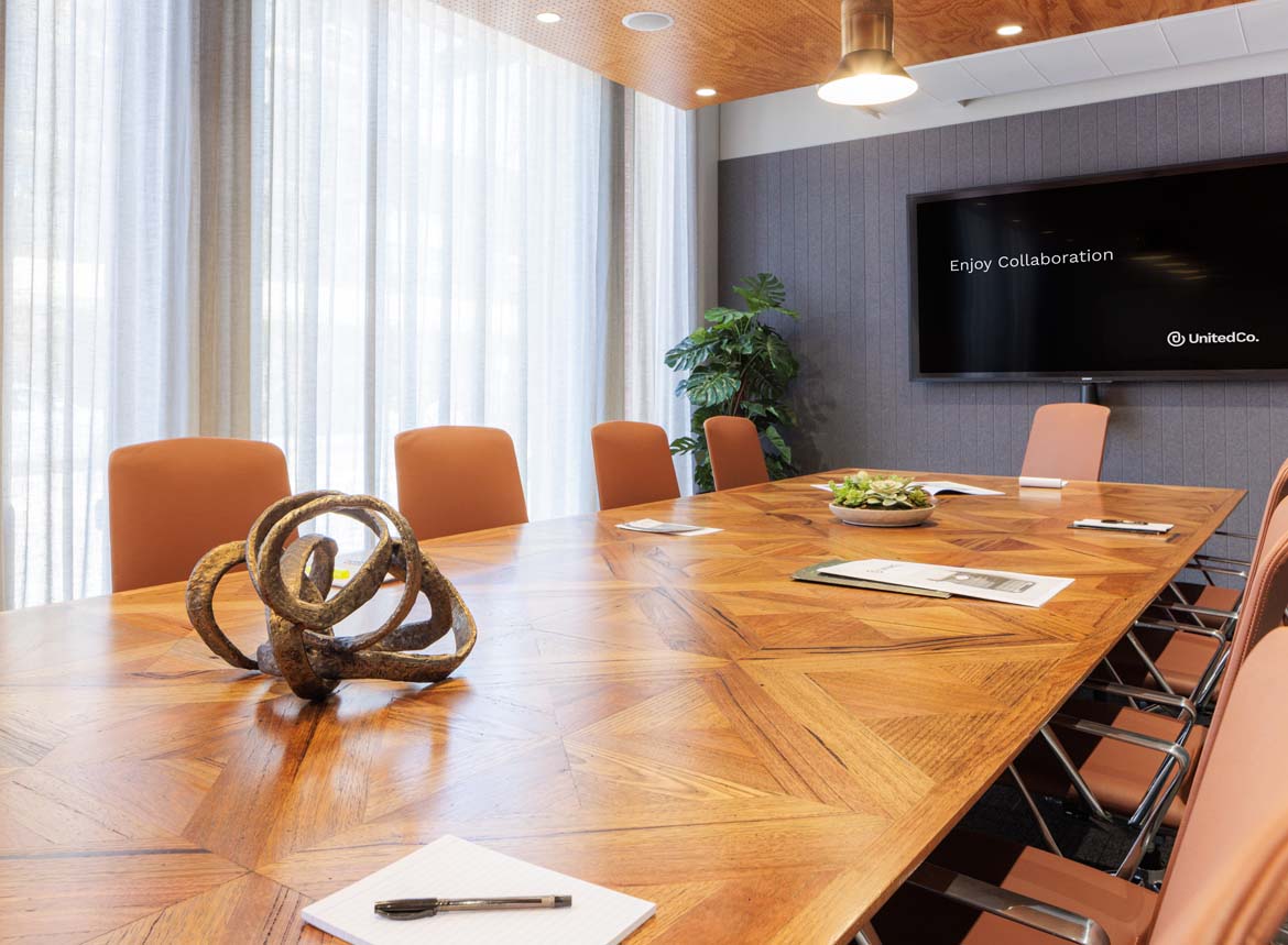 United Co. conference rooms combine cutting-edge technology with intentional design for a premium meeting experience. At United Co. you will have access to a range of meeting rooms ranging from 3-24 seats for everything from team meetings to planning sessions, conferences to seminars, professional development sessions to strategy meetings, our meeting rooms are ideal for corporate events of all types.