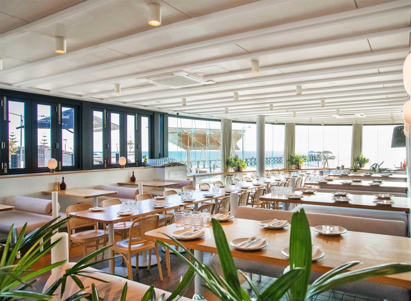 Want your date night to capture all the fun and sunshine of summer, no matter the season? Henley House is perched right by the waves, with three levels to choose between from the luxurious open-air rooftop bar, to the dining room boasting sleek floor-to-ceiling windows, to the beachfront tables just off the esplanade. Their interiors drip with bohemian charm, featuring white wooden panelling on the walls, rattan lampshades and murals of blue.